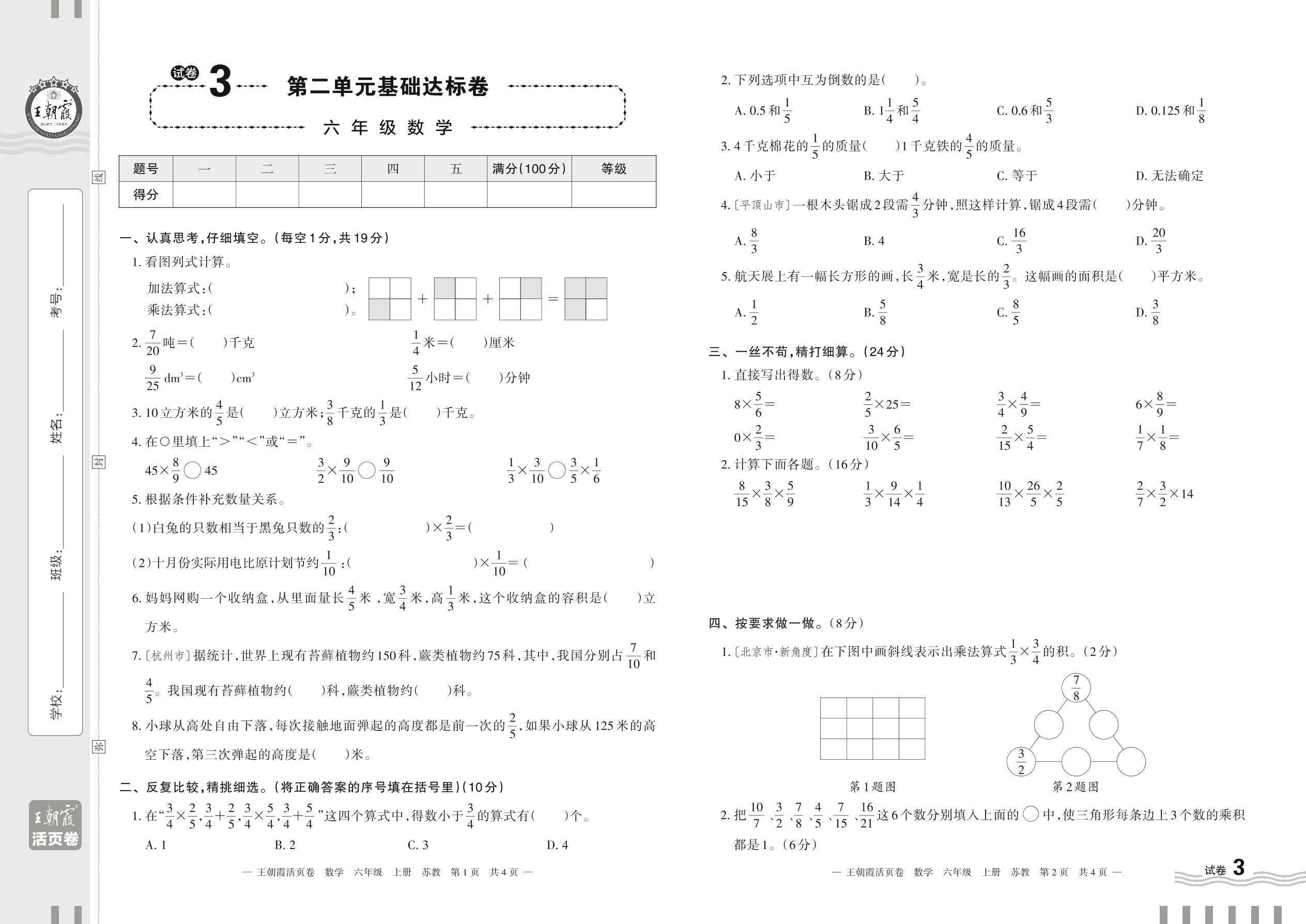 2023上册六年级数学苏教版 试卷3 第二单元基础达标卷