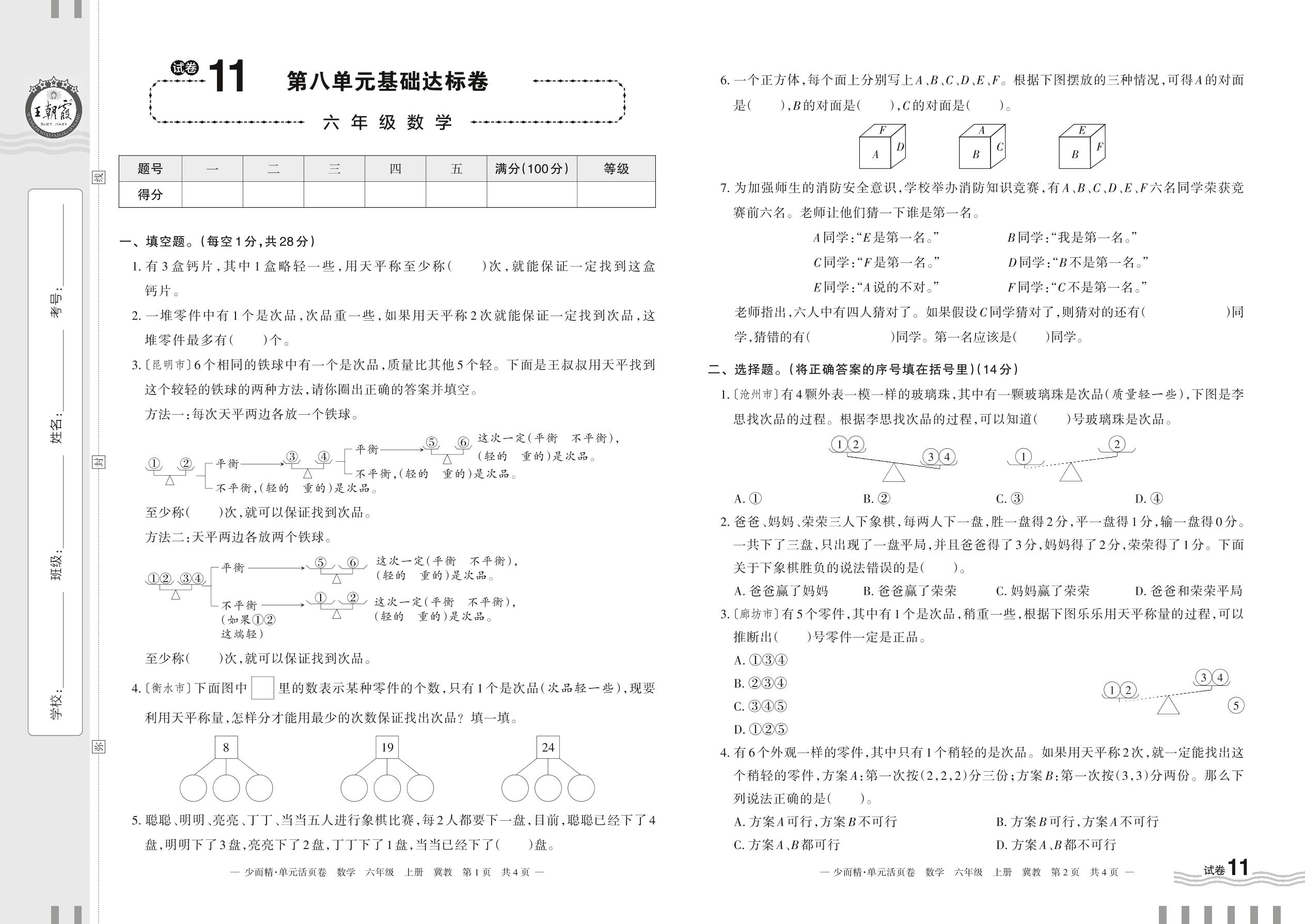 2023上册六年级数学冀教版 试卷11 第八单元基础达标卷