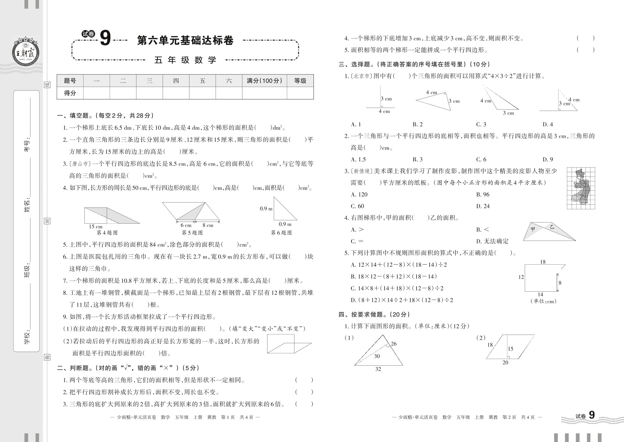 2023上册五年级数学冀教版 试卷9 第六单元基础达标卷