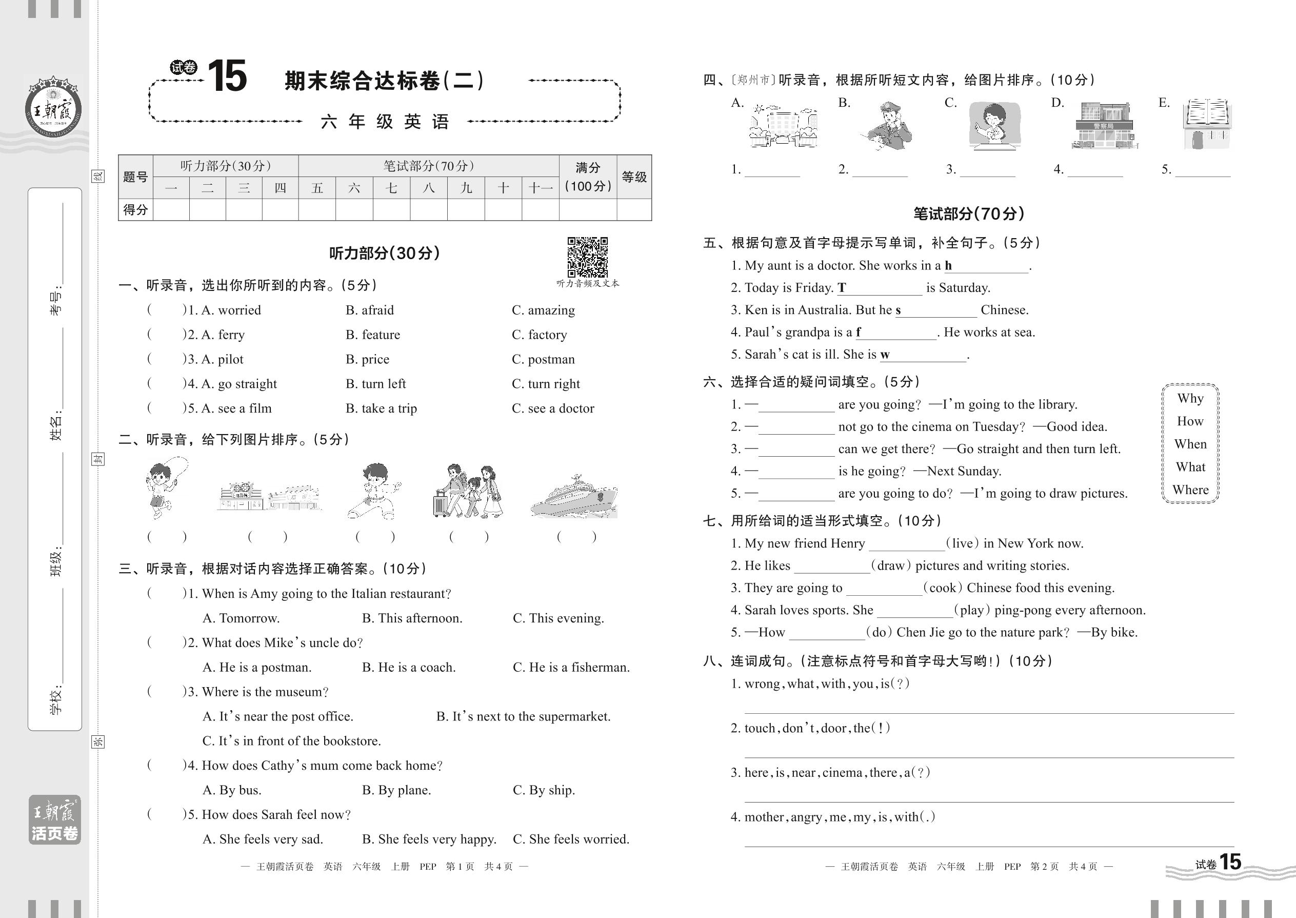 2023上册六年级英语人教PEP版 试卷15 期末综合达标卷(二)