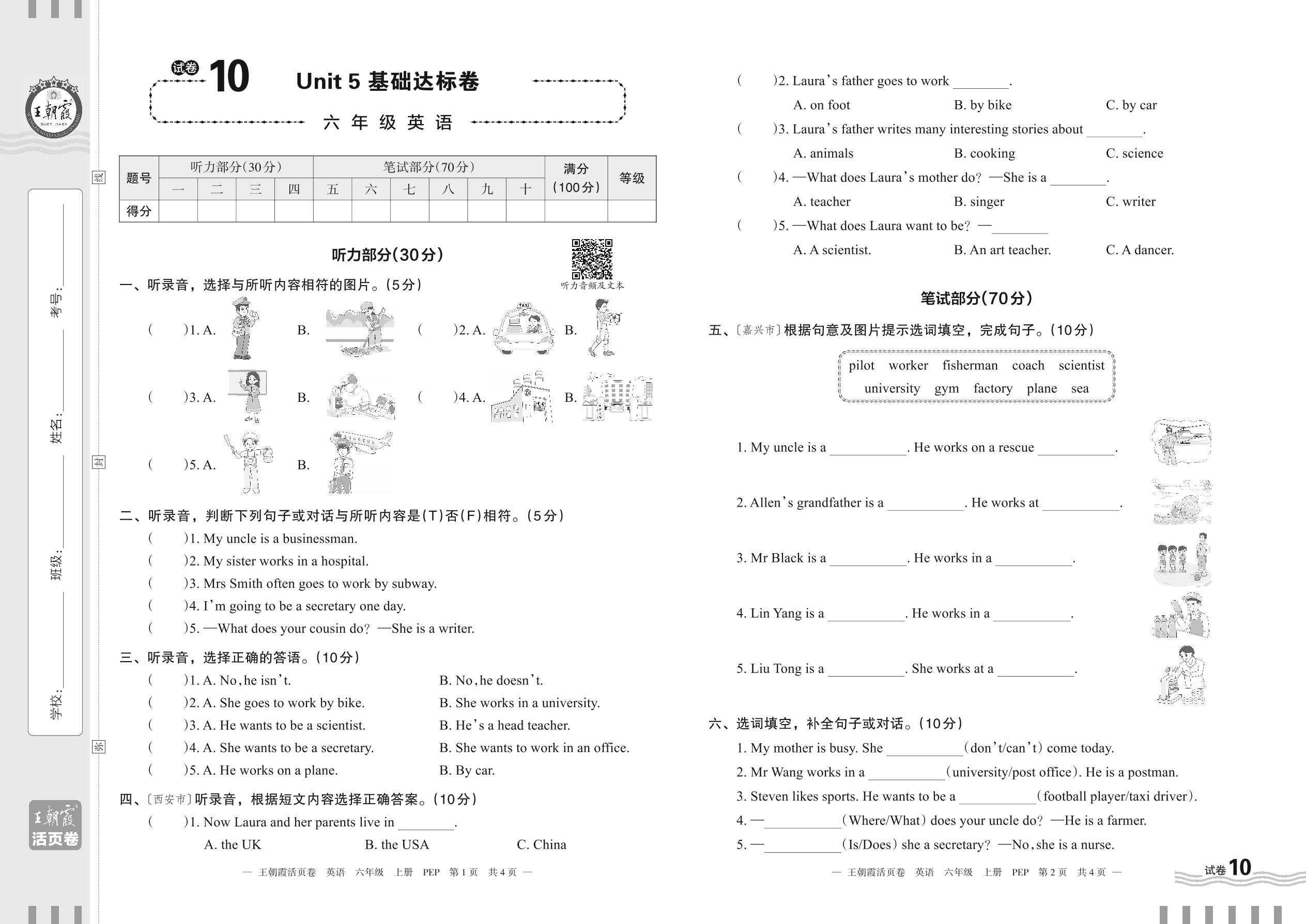 2023上册六年级英语人教PEP版 试卷10 Unit 5 基础达标卷