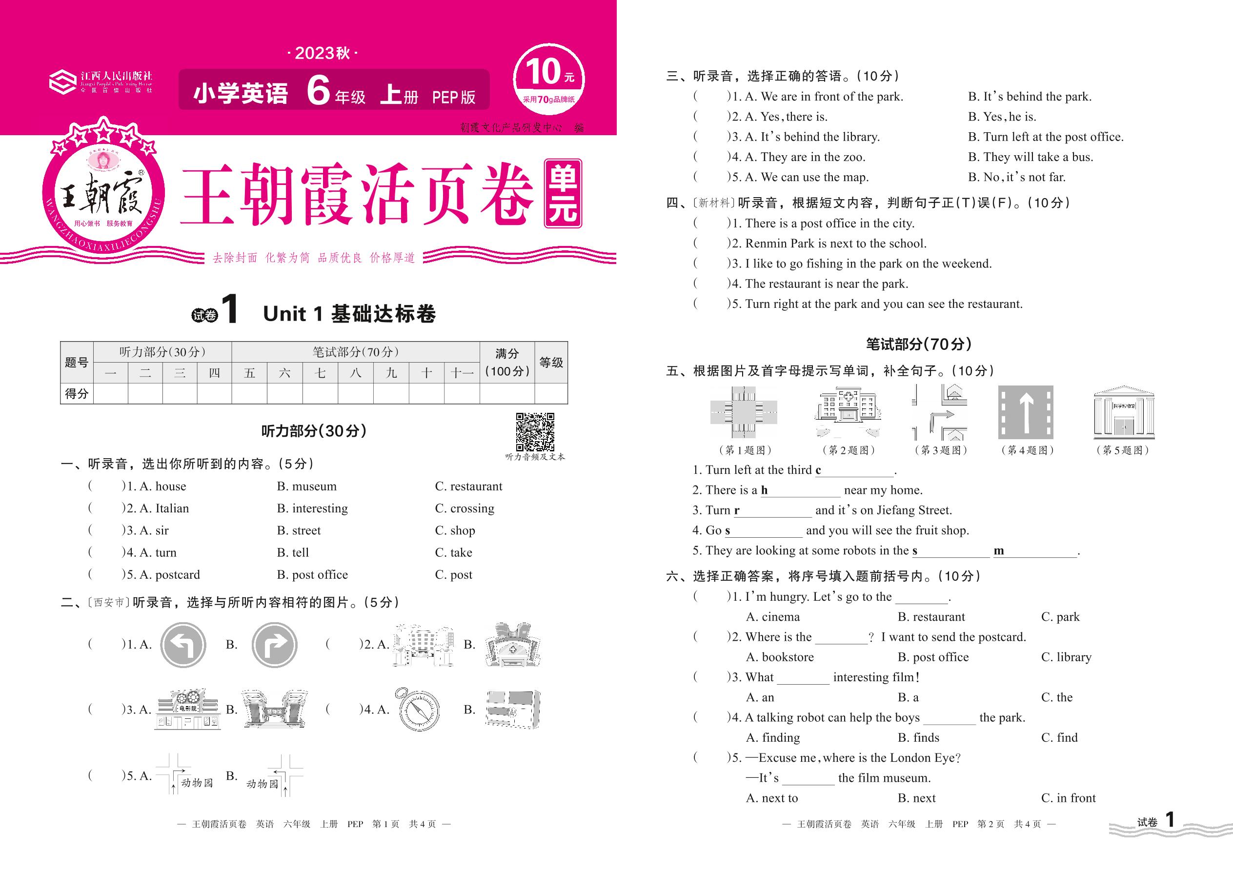 2023上册六年级英语人教PEP版 试卷1 Unit 1 基础达标卷