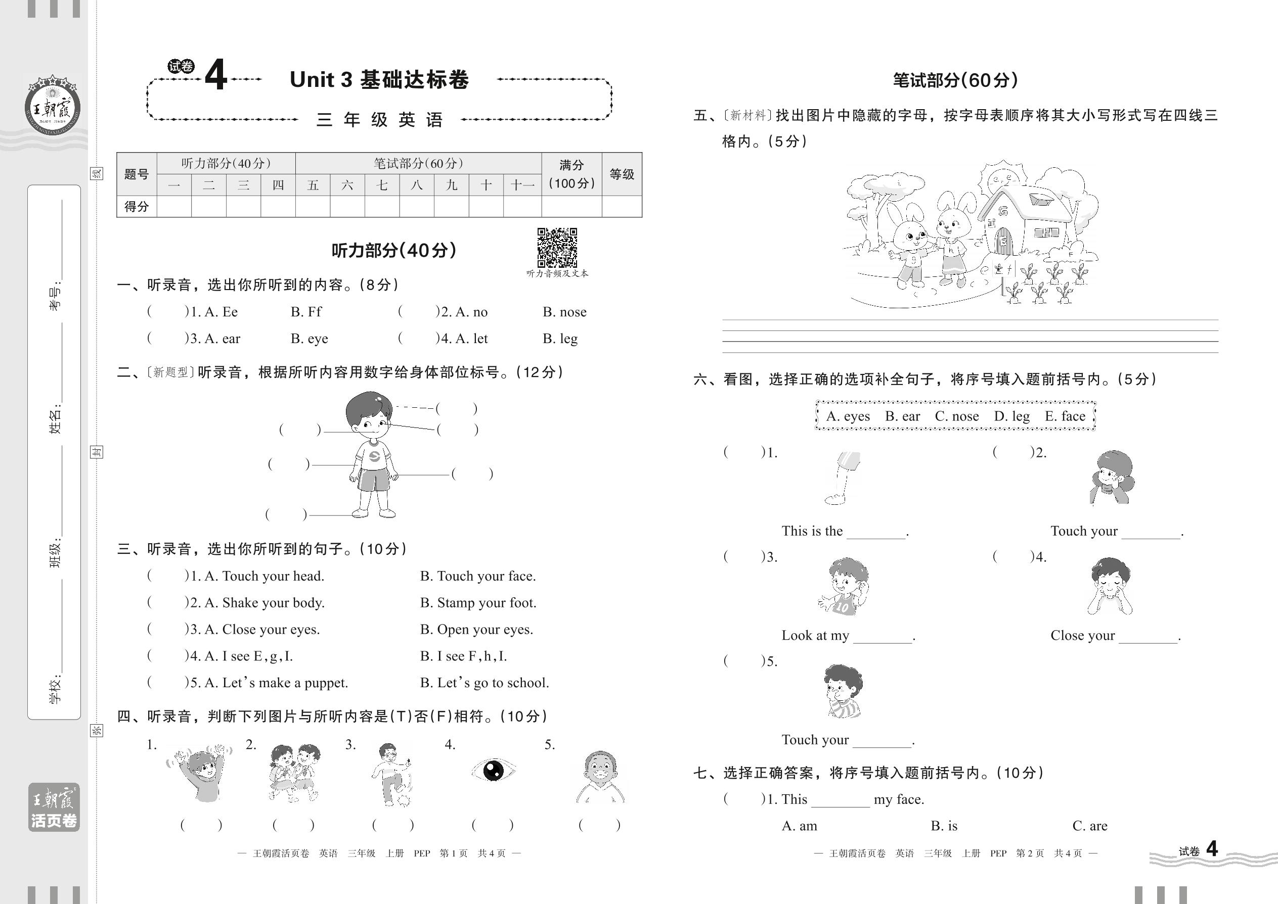 三年级英语人教PEP版(三起始)上册单元卷