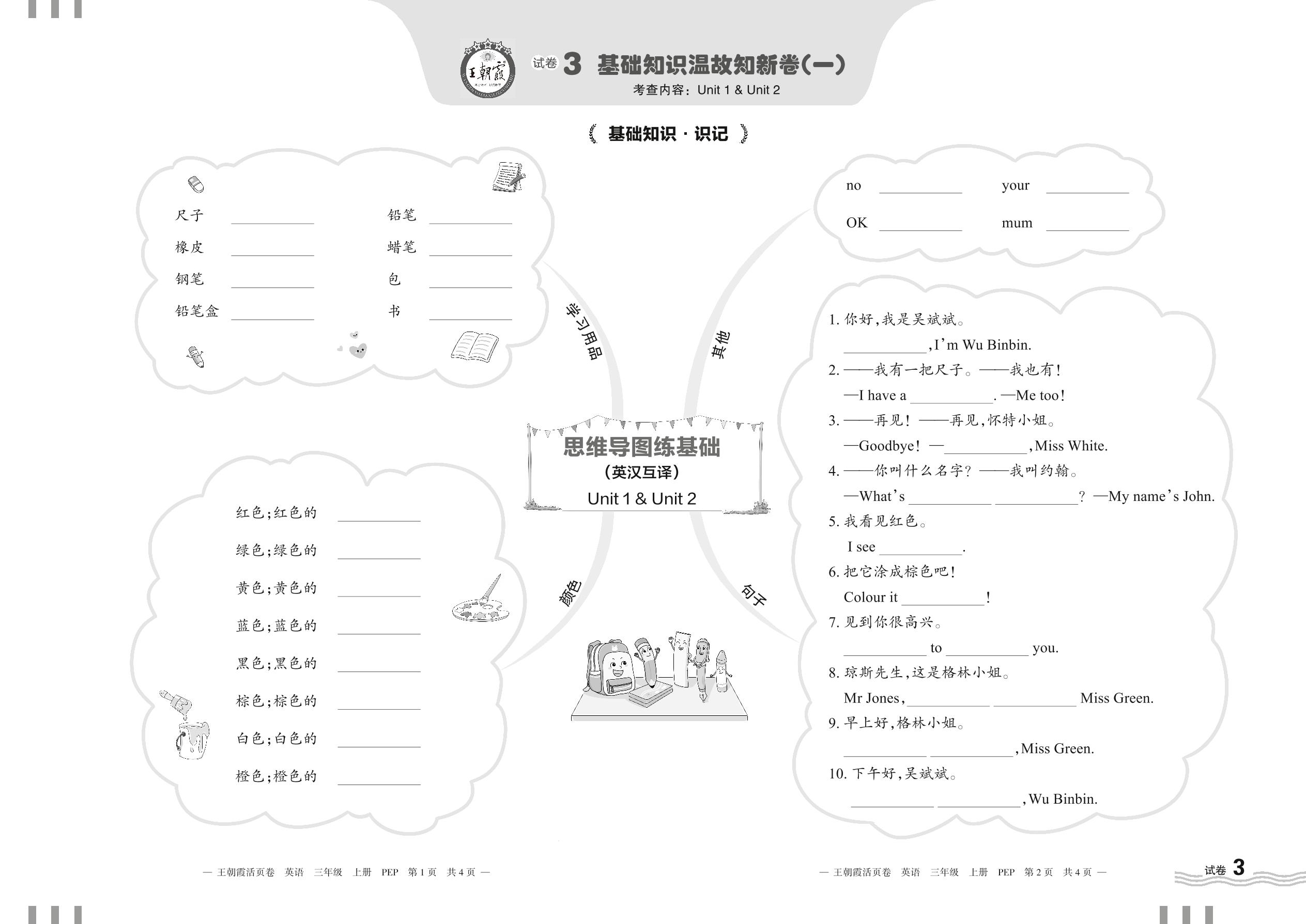 2023上册三年级英语人教PEP版 试卷3 基础知识温故知新卷(一)