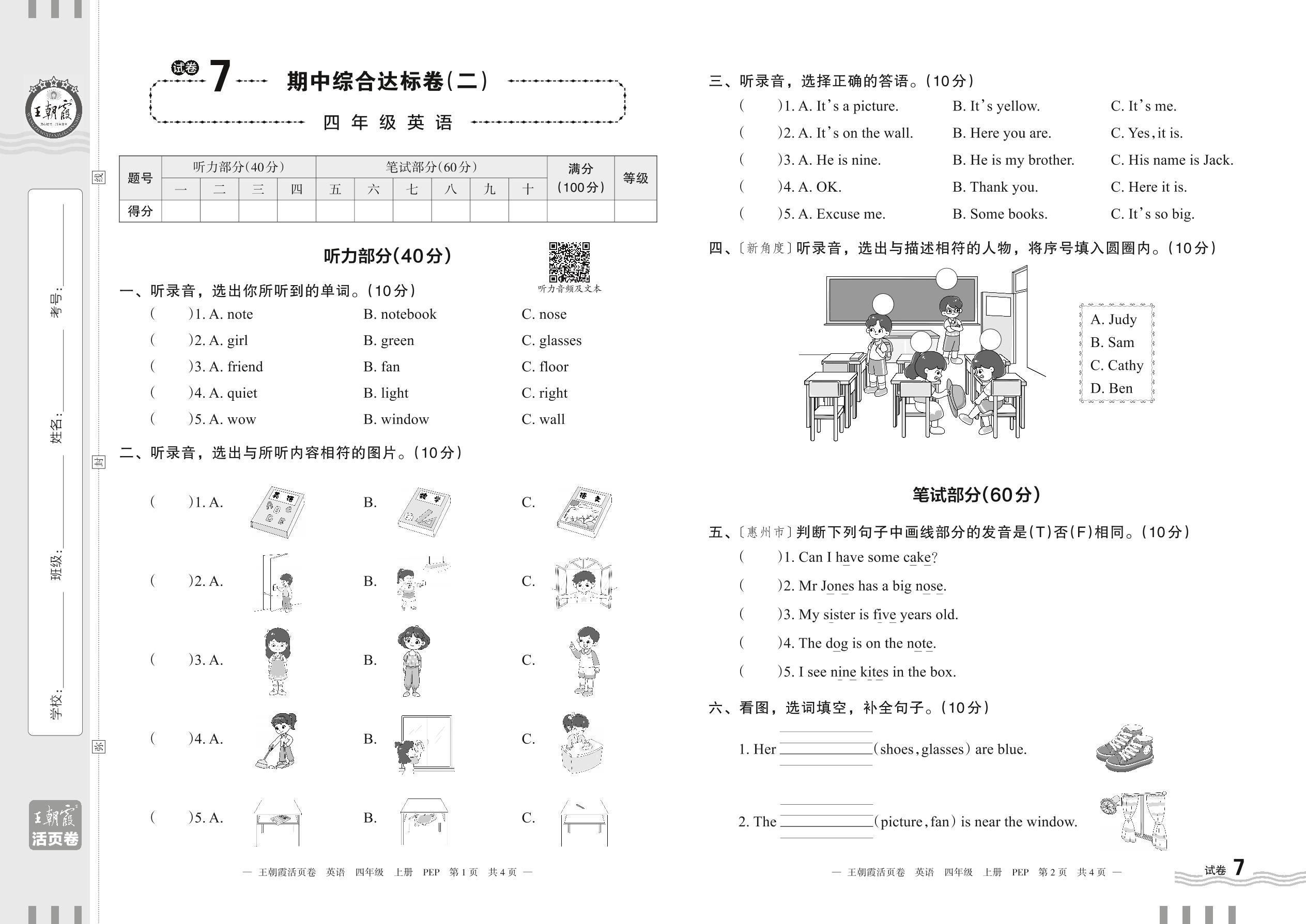 2023上册四年级英语人教PEP版 试卷7 期中综合达标卷(二)