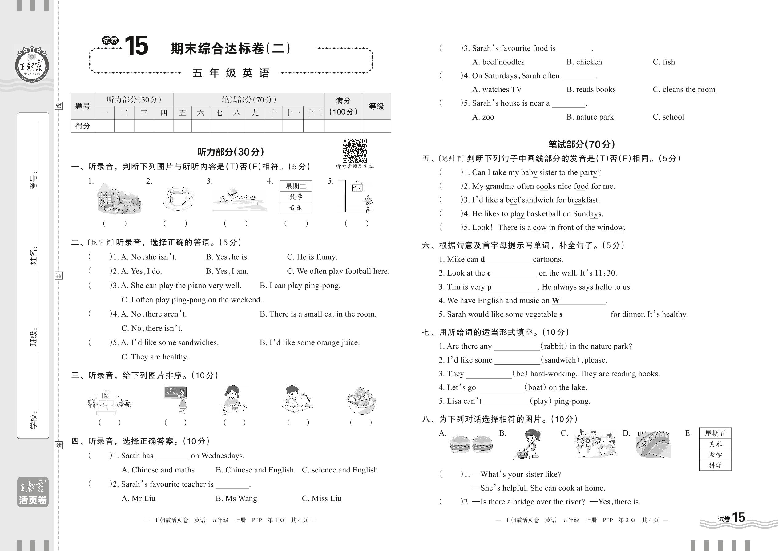 2023上册五年级英语人教PEP版 试卷15 期末综合达标卷(二)