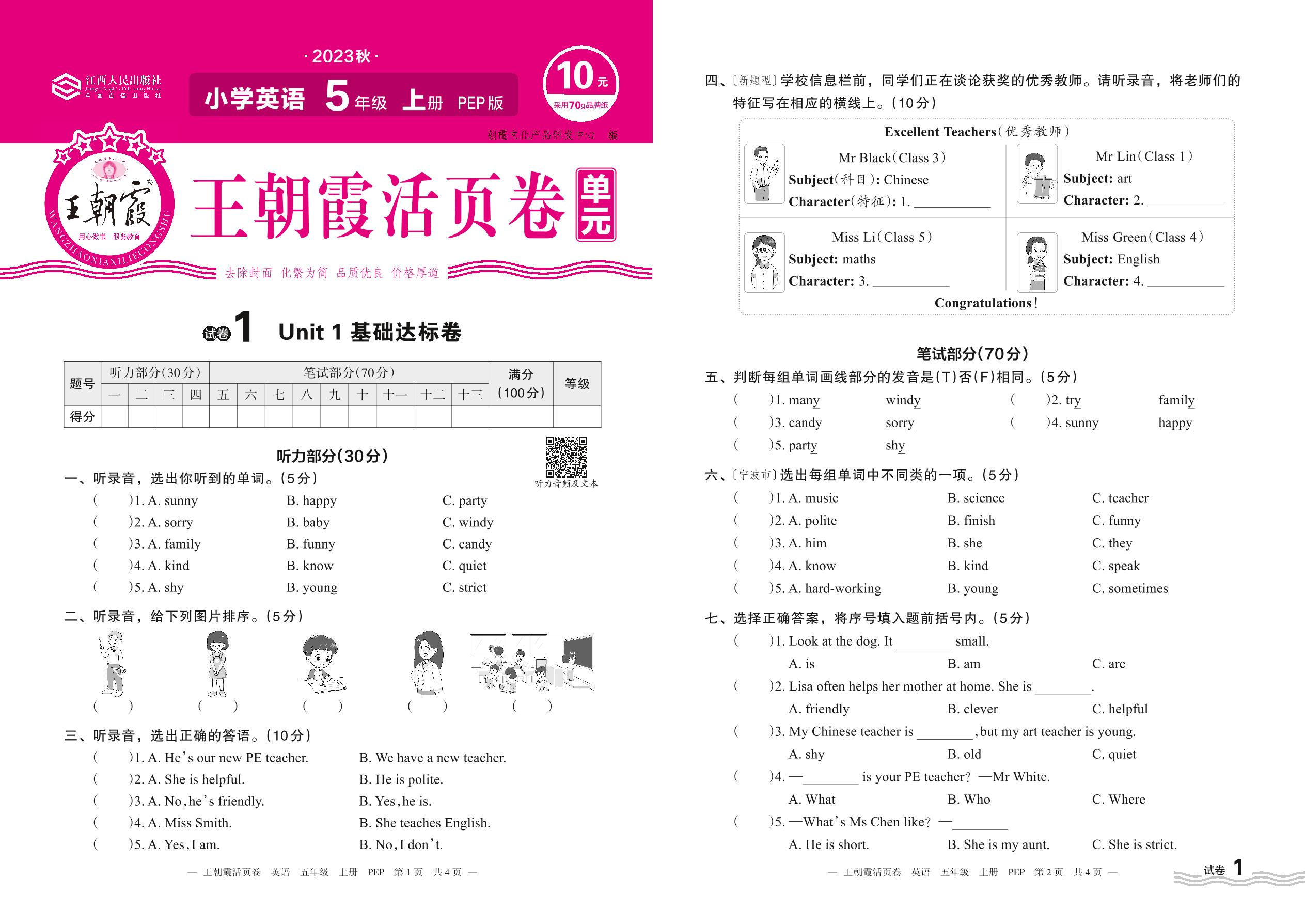 2023上册五年级英语人教PEP版 试卷1 Unit 1 基础达标卷