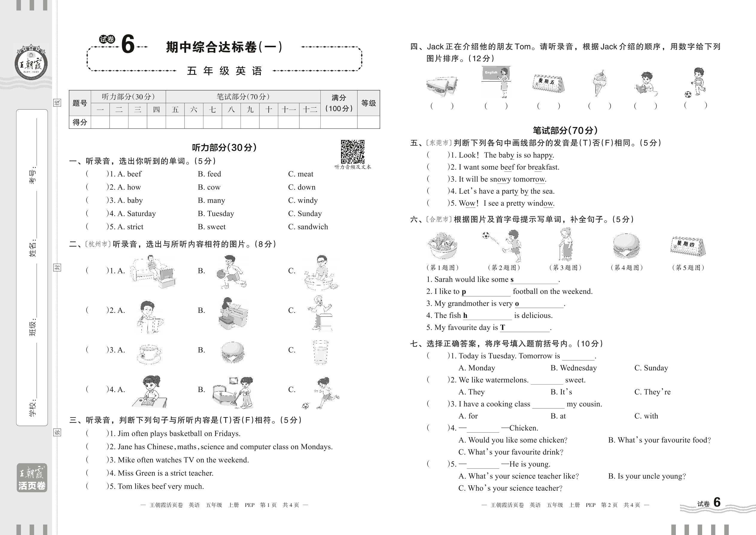 2023上册五年级英语人教PEP版 试卷6 期中综合达标卷(一)