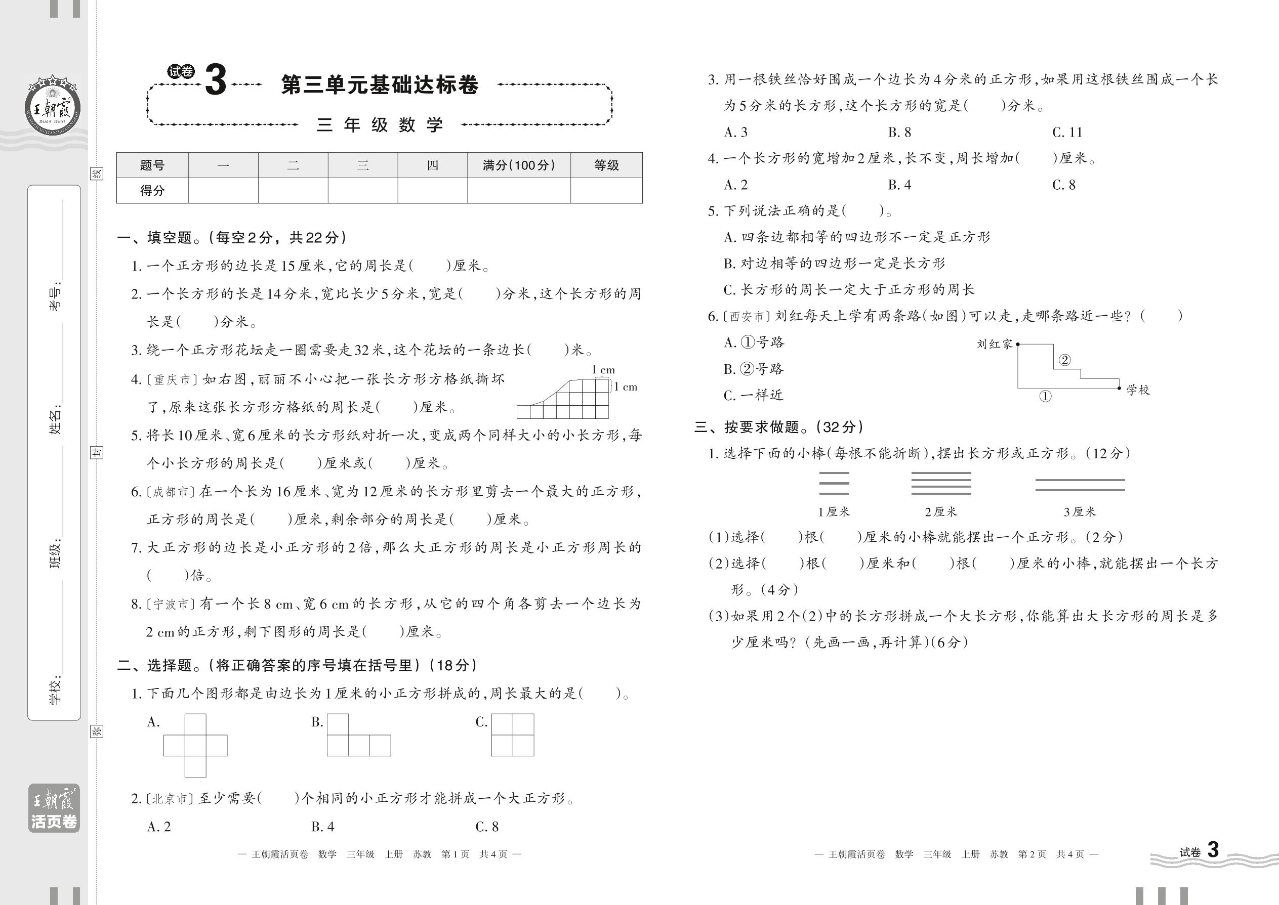 2023上册三年级数学苏教版 试卷3 第三单元基础达标卷