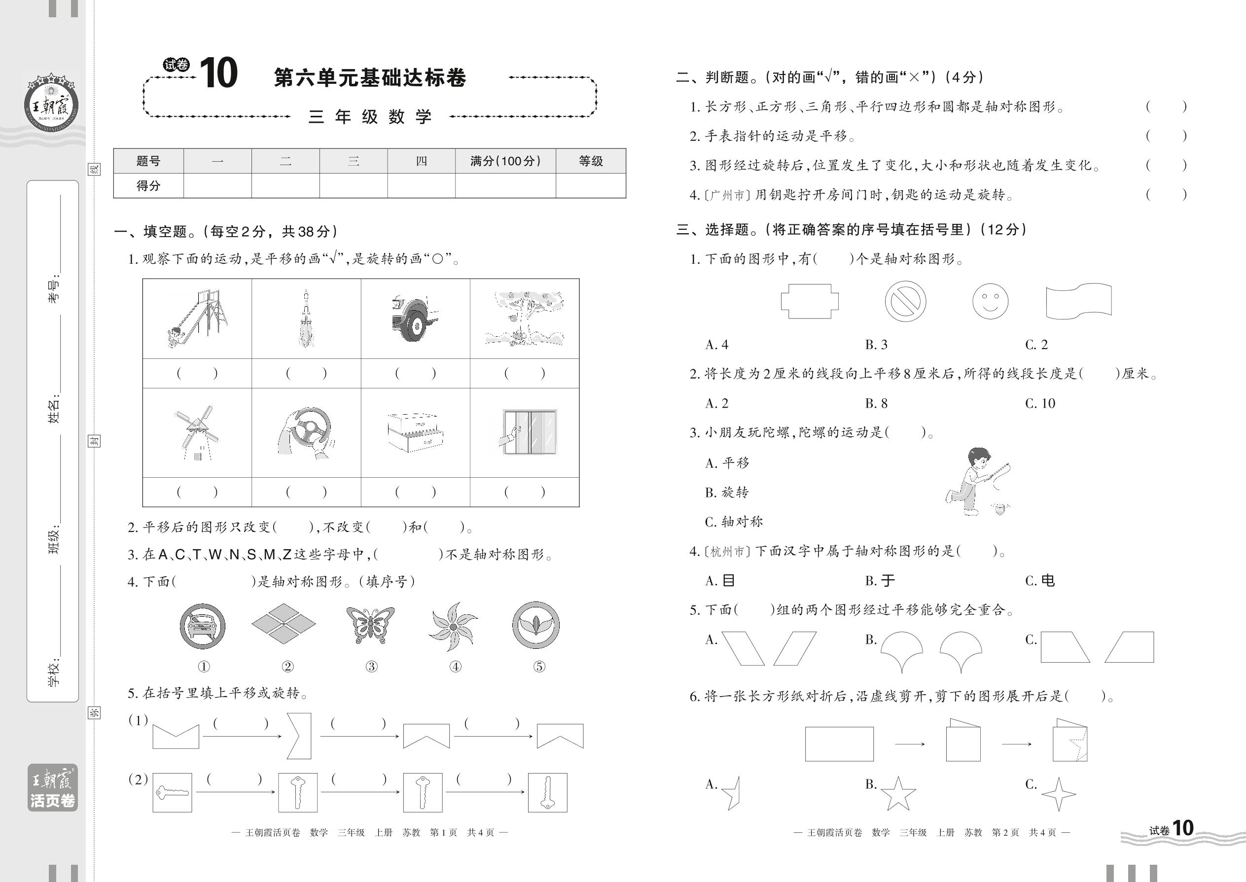 2023上册三年级数学苏教版 试卷10 第六单元基础达标卷
