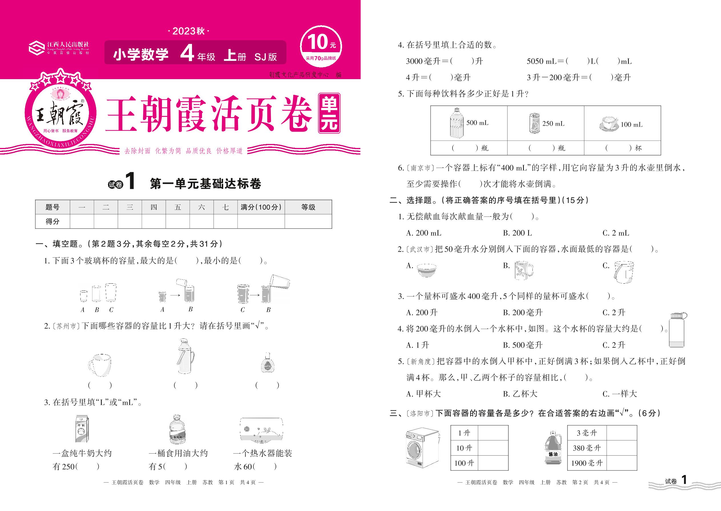 2023上册四年级数学苏教版 试卷1 第一单元基础达标卷