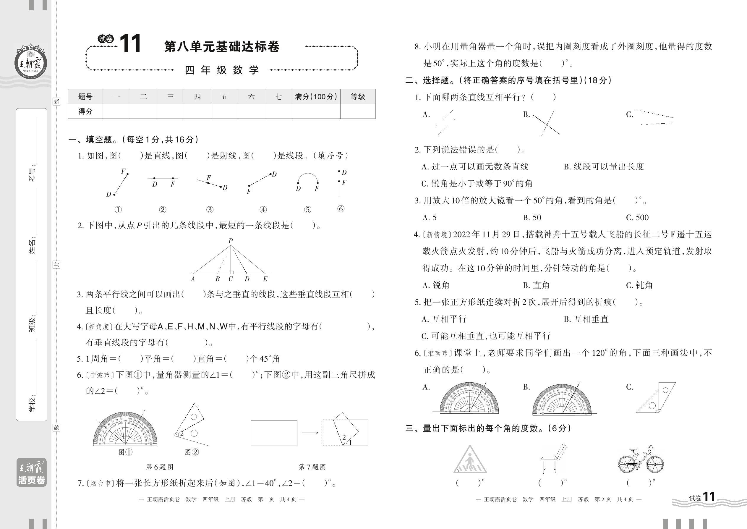 2023上册四年级数学苏教版 试卷11 第八单元基础达标卷