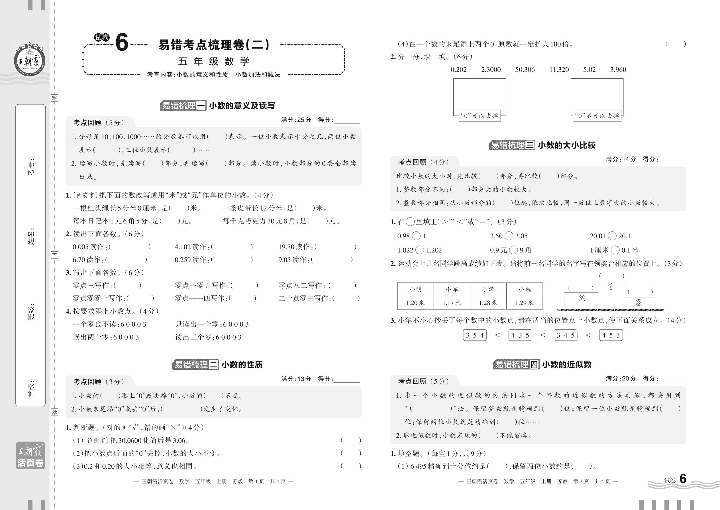 2023上册五年级数学苏教版 试卷6 易错考点梳理卷(二)