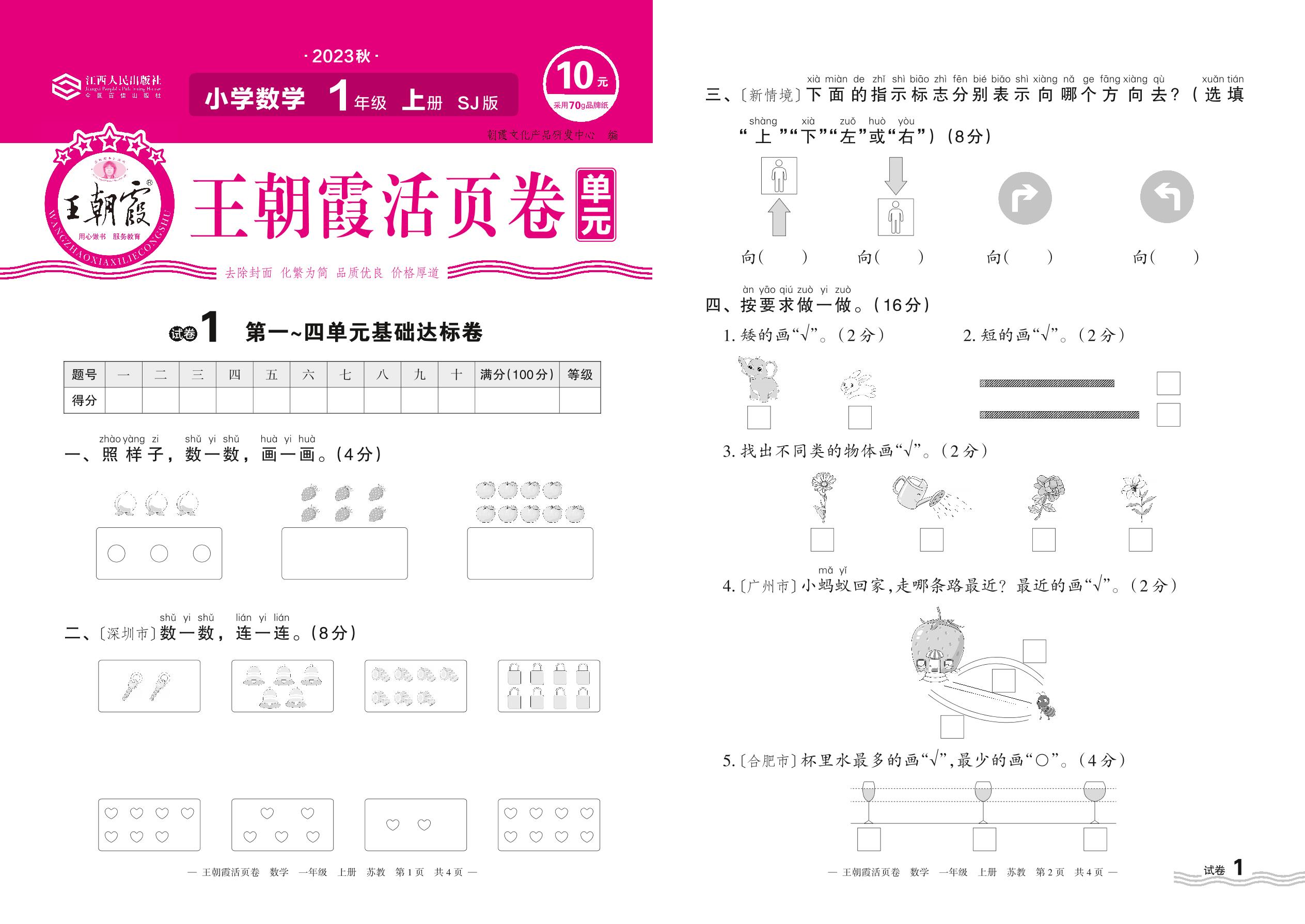 2023上册一年级数学苏教版 试卷1 第一~四单元基础达标卷