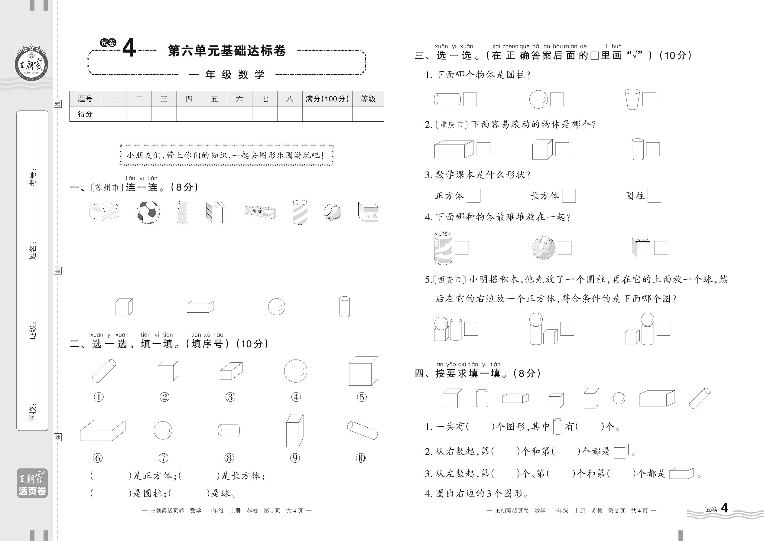 2023上册一年级数学苏教版 试卷4 第六单元基础达标卷