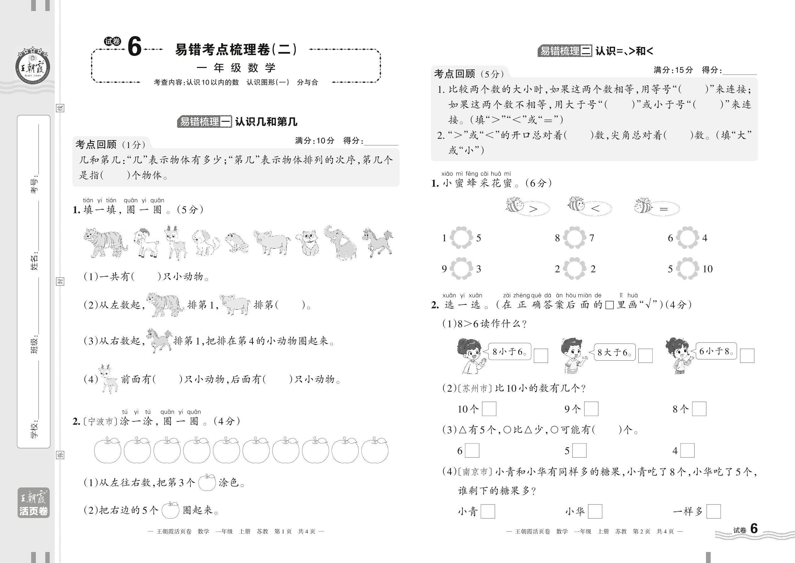 2023上册一年级数学苏教版 试卷6 易错考点梳理卷(二)