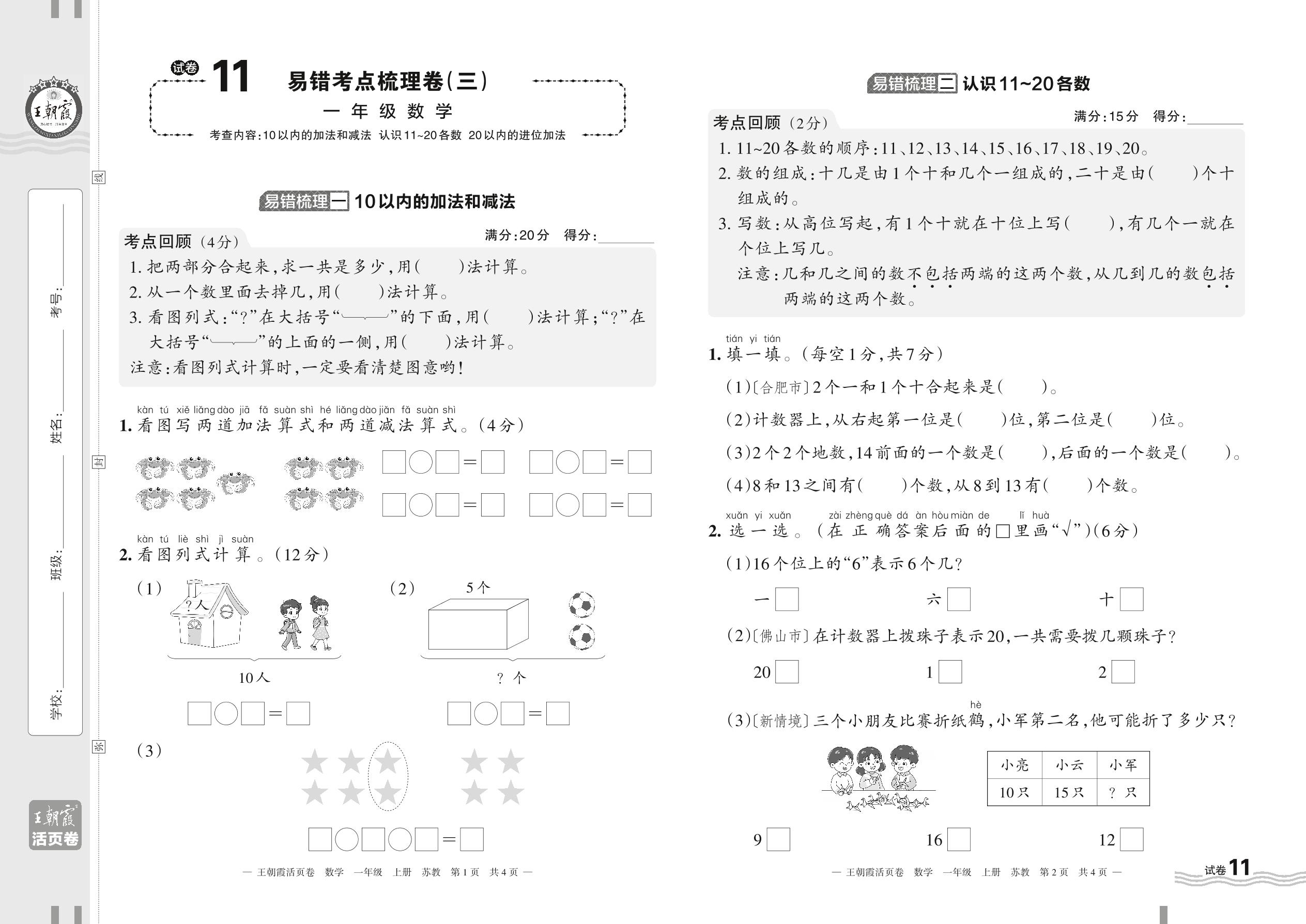 2023上册一年级数学苏教版 试卷11 易错考点梳理卷(三)