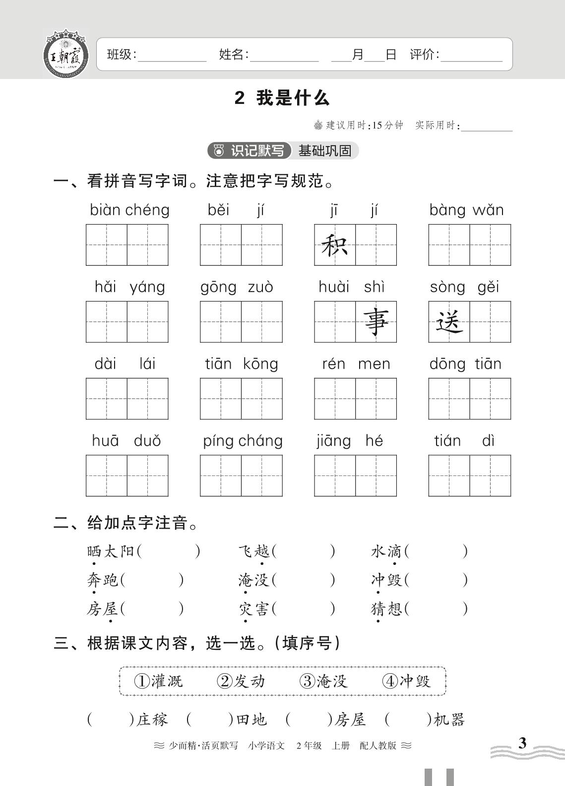 2023上册二年级语文人教版 第一单元——2 我是什么