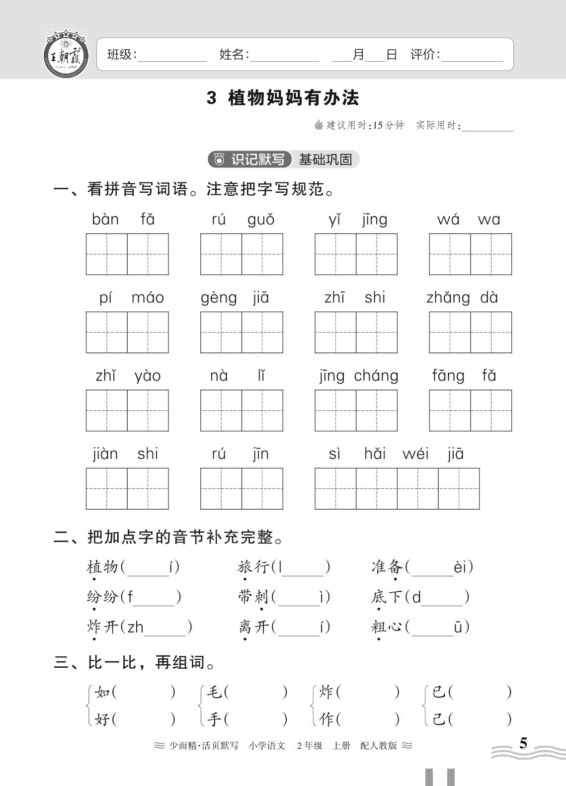 2023上册二年级语文人教版 第一单元——3 植物妈妈有办法