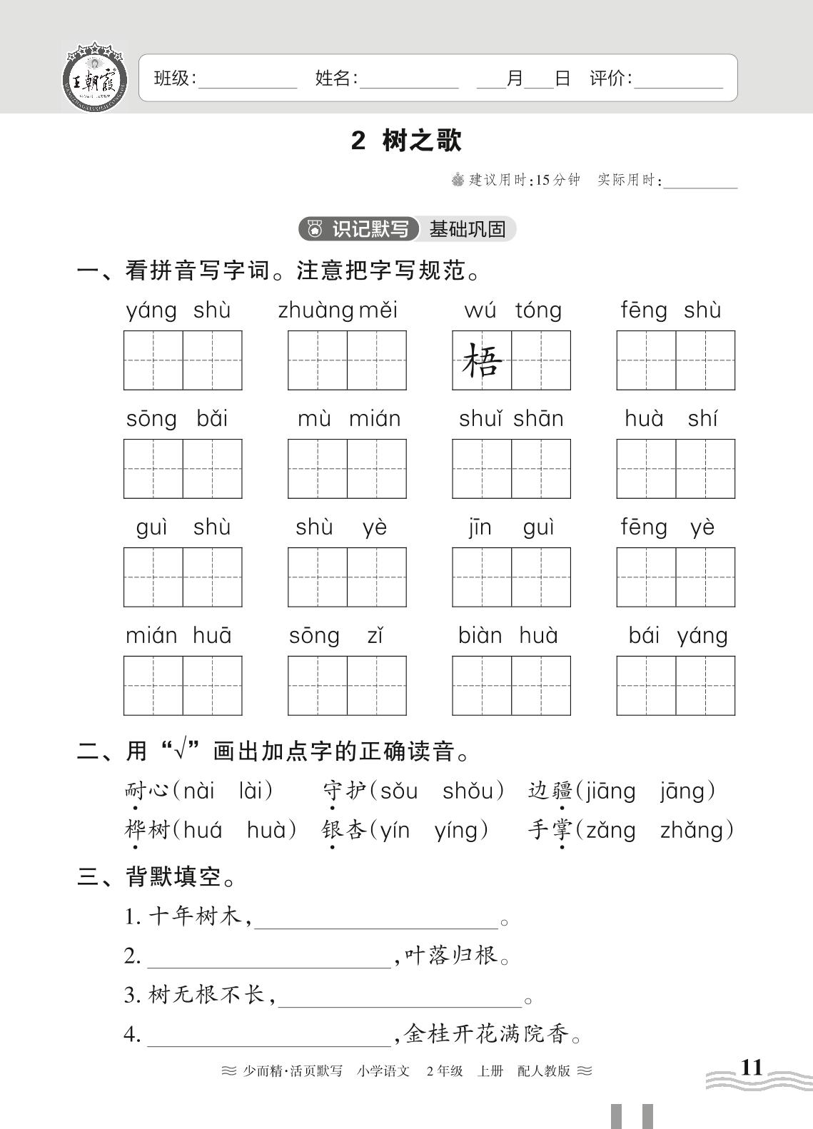 2023上册二年级语文人教版 第二单元——2 树之歌