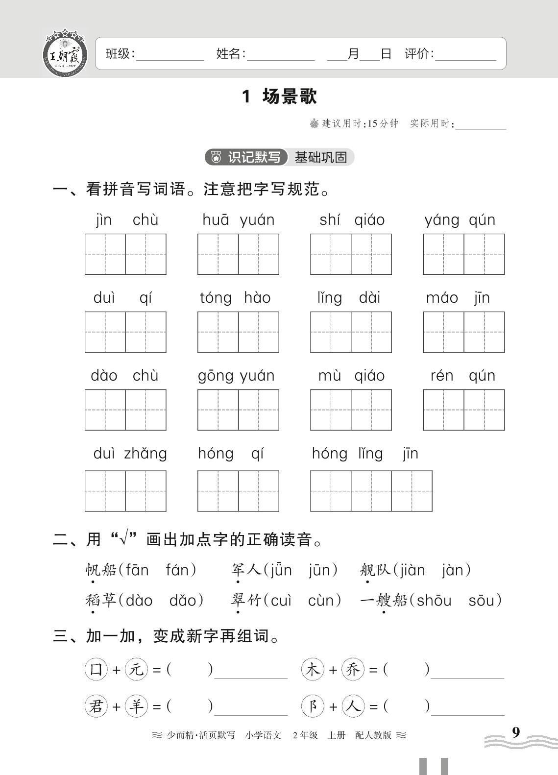 2023上册二年级语文人教版 第二单元——1 场景歌