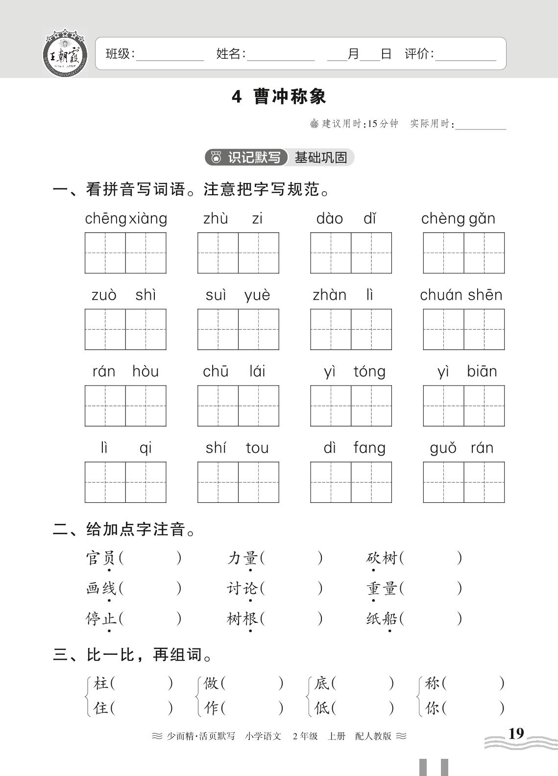 2023上册二年级语文人教版 第三单元——4 曹冲称象