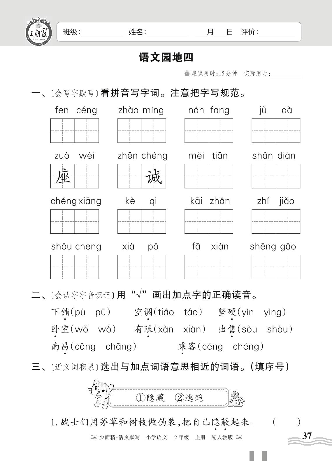 二年级语文人教版上册课时作业
