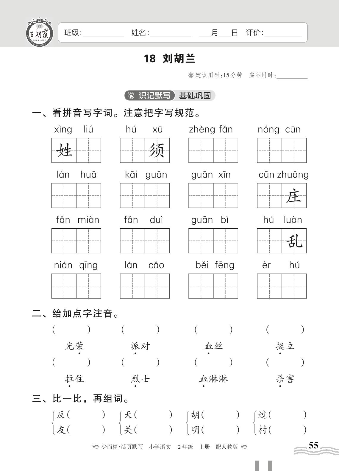 2023上册二年级语文人教版 第六单元——18 刘胡兰