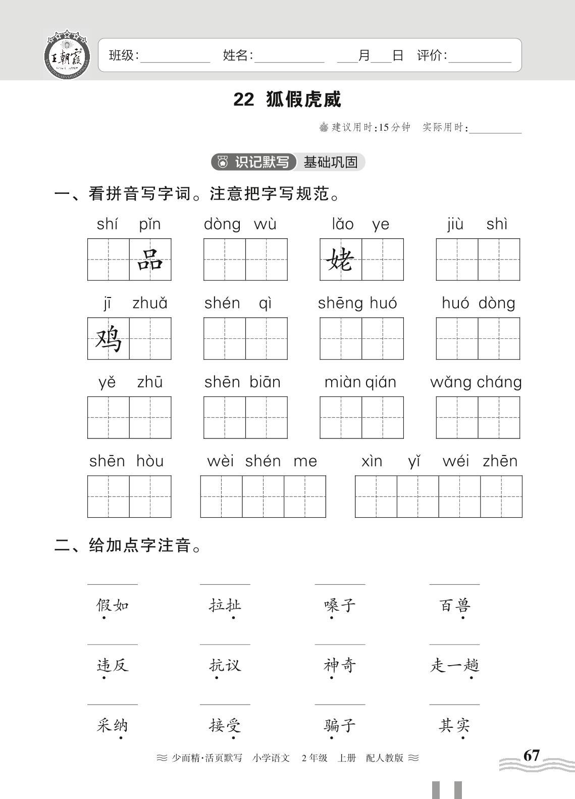 2023上册二年级语文人教版 第八单元——22 狐假虎威