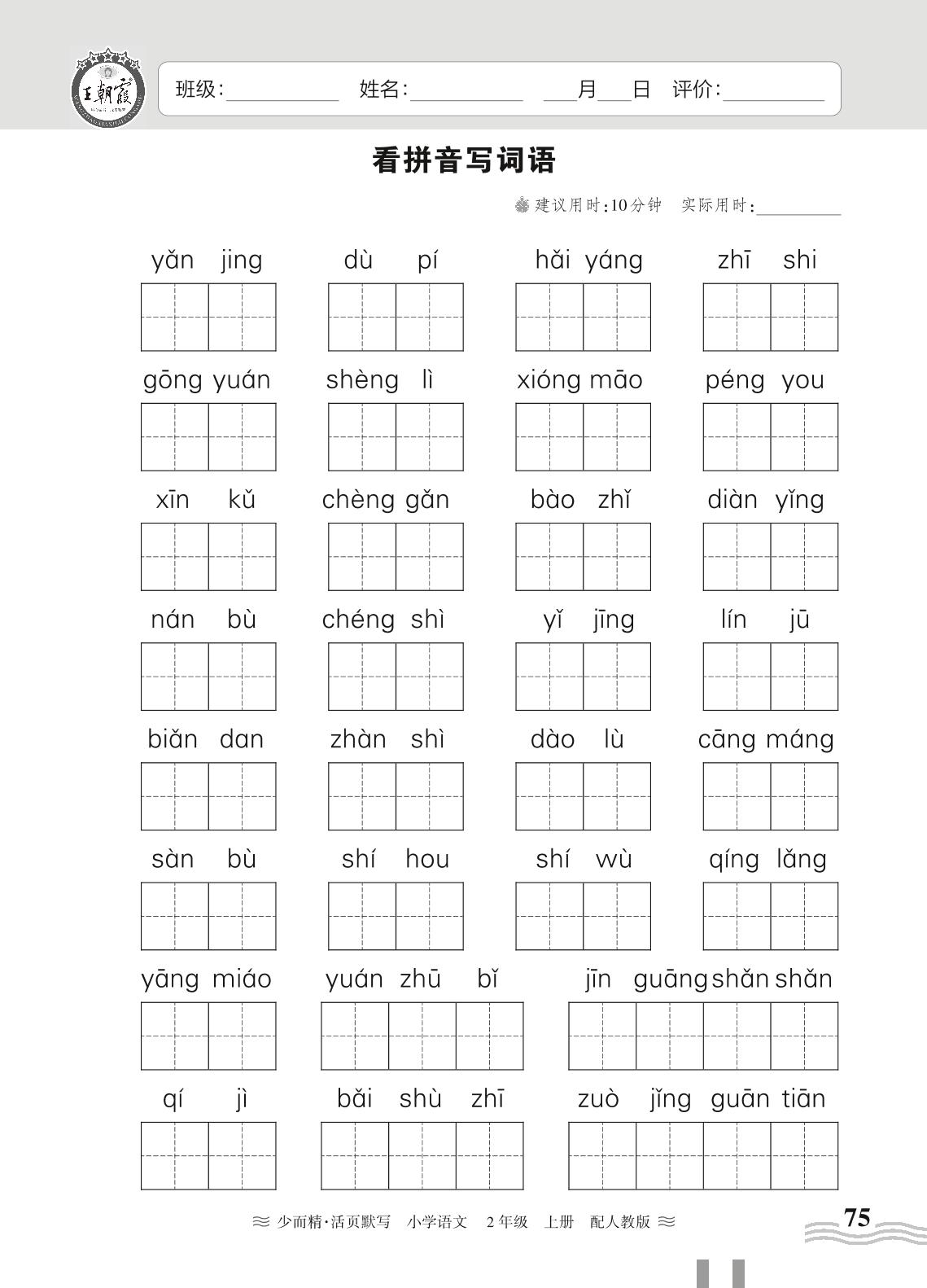 2023上册二年级语文人教版 期末专项练习——看拼音写词语