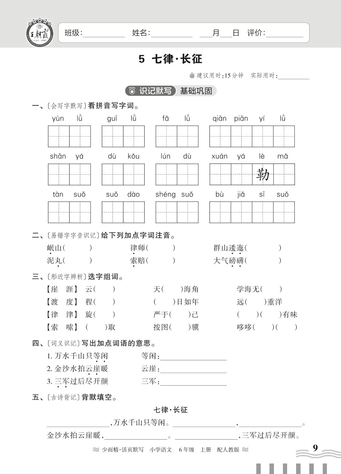 2023上册六年级语文人教版 第二单元——5 七律·长征