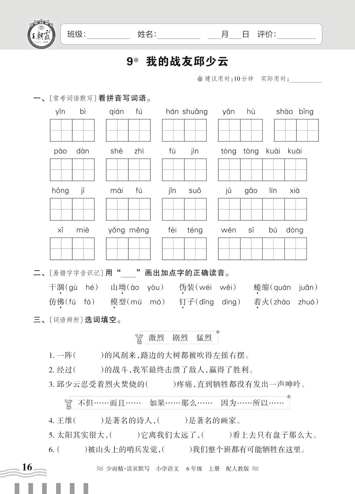 2023上册六年级语文人教版 第二单元——9 我的战友邱少云
