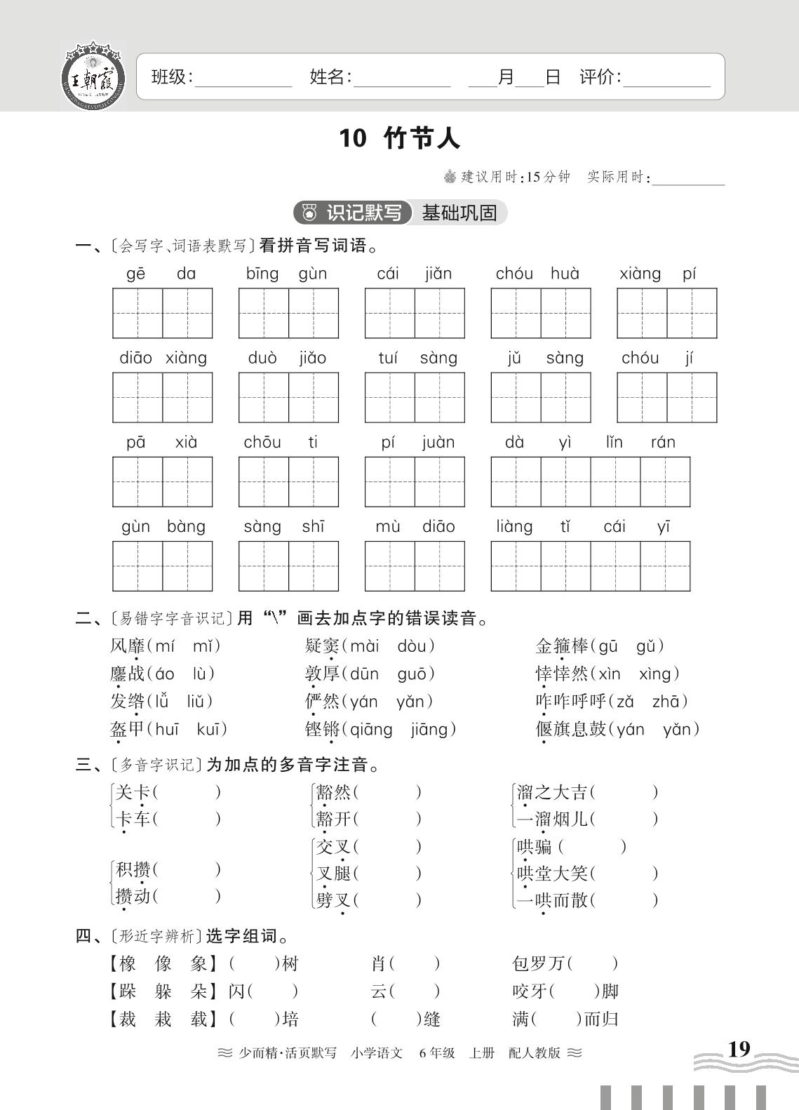 2023上册六年级语文人教版 第三单元——10 竹节人