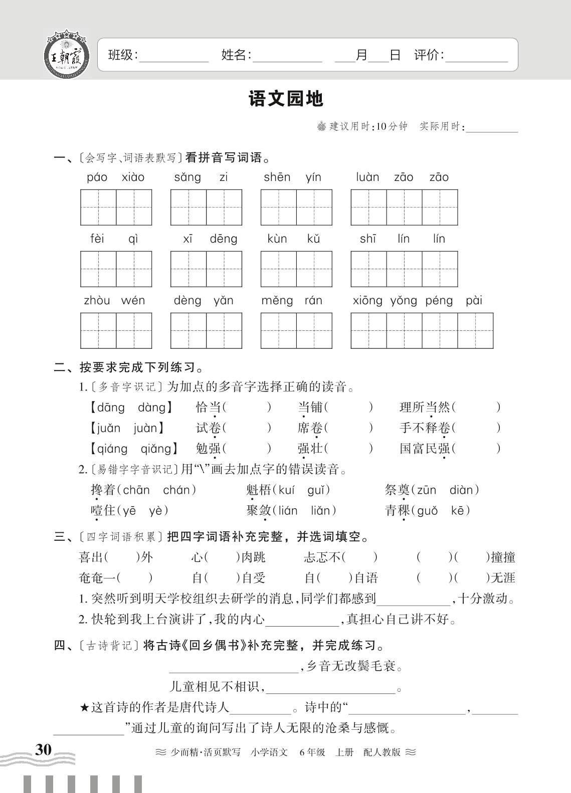 六年级语文人教版上册课时作业