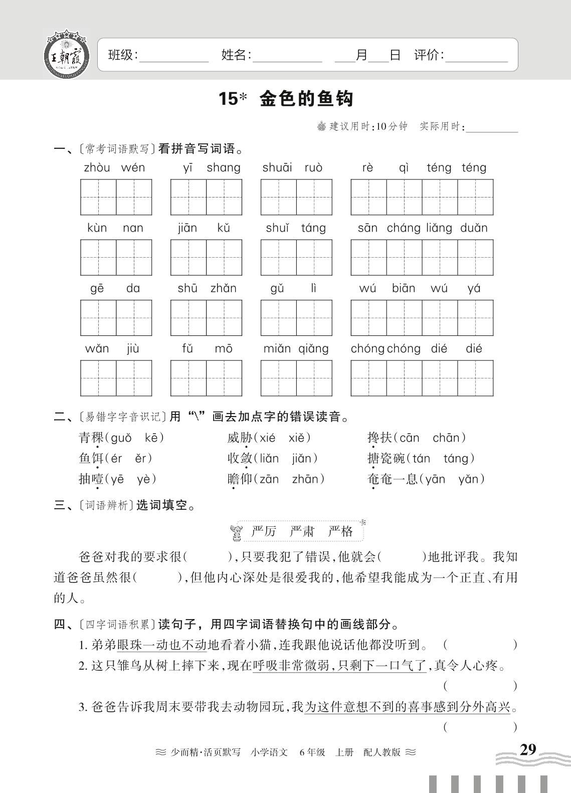 2023上册六年级语文人教版 第四单元——15 金色的鱼钩