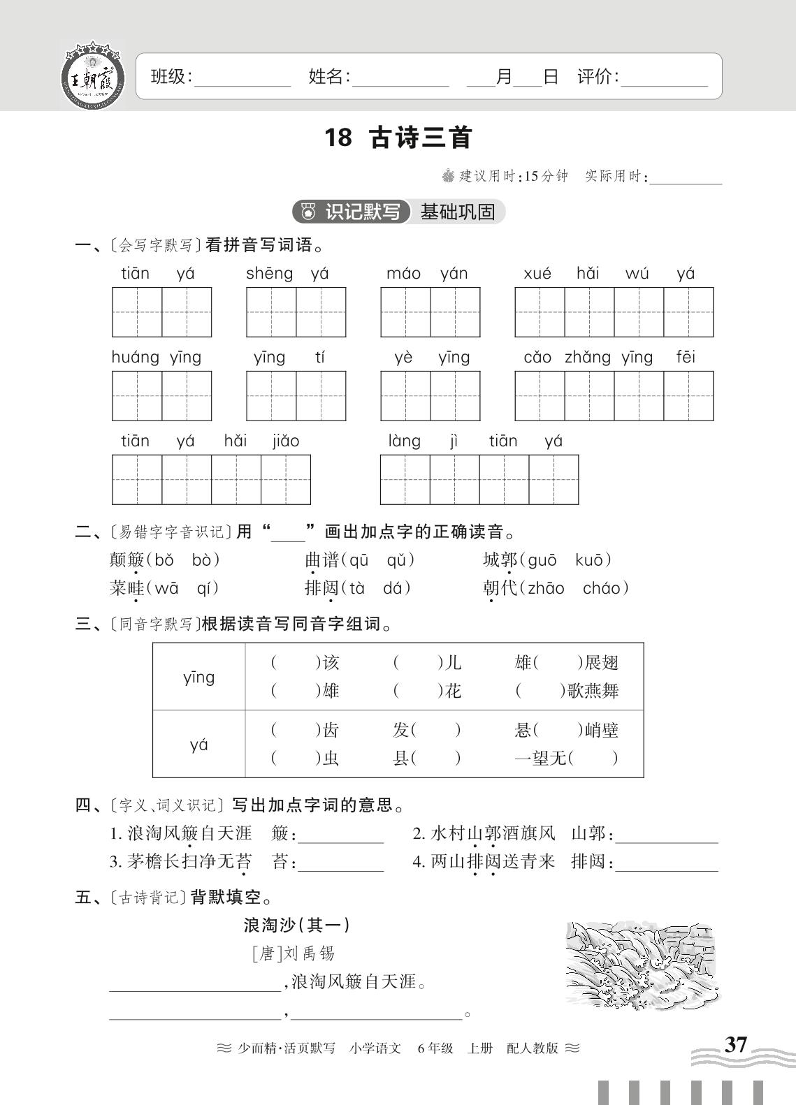 2023上册六年级语文人教版 第六单元——18 古诗三首