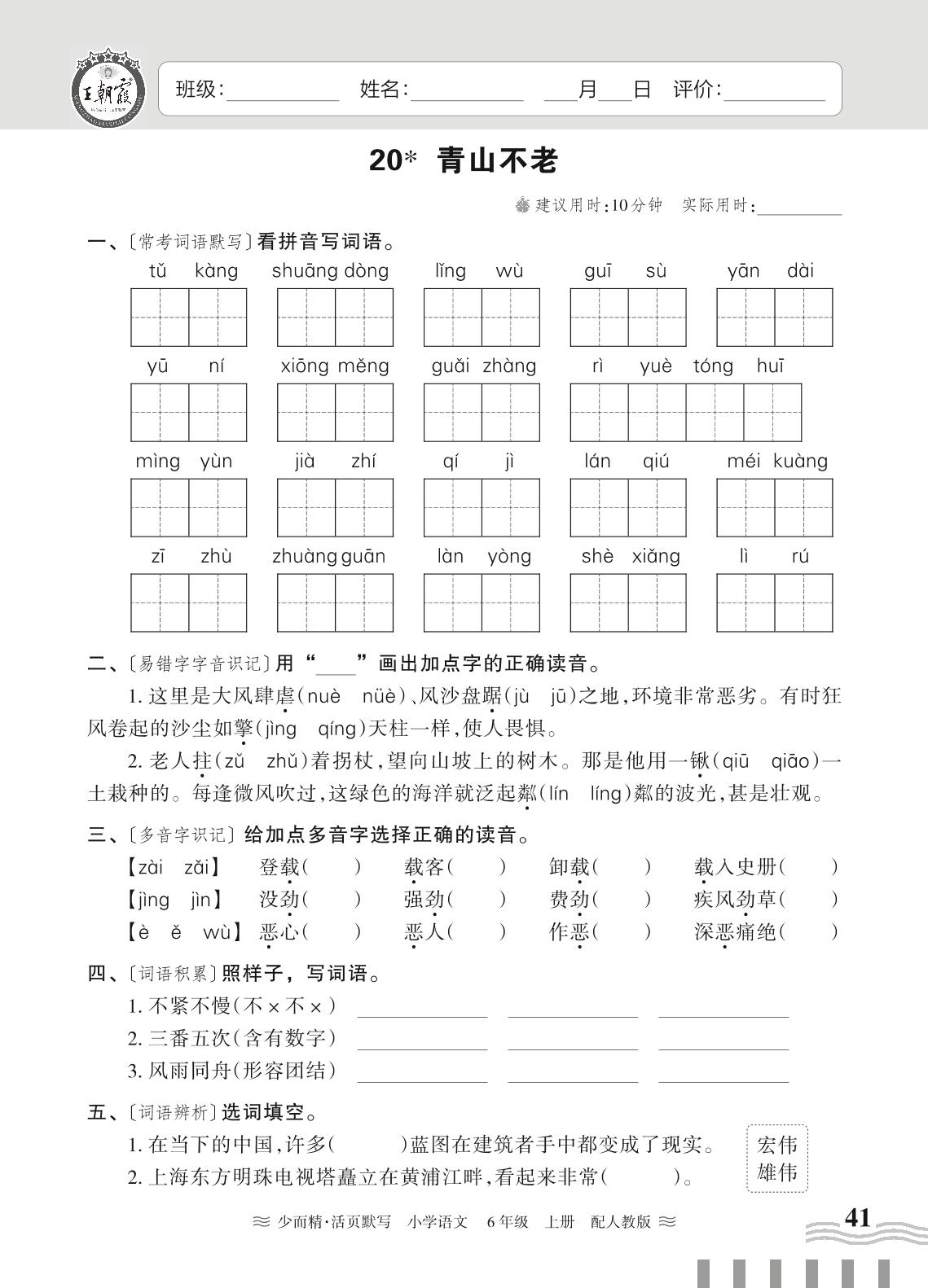 2023上册六年级语文人教版 第六单元——20 青山不老
