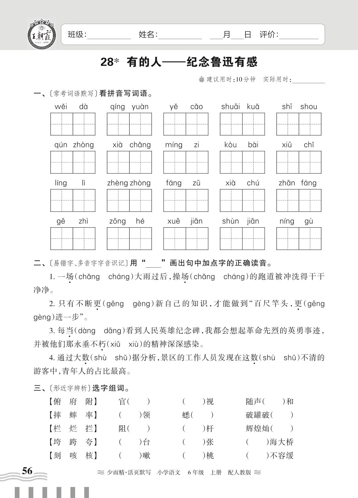 2023上册六年级语文人教版 第八单元——28 有的人——纪念鲁迅有感