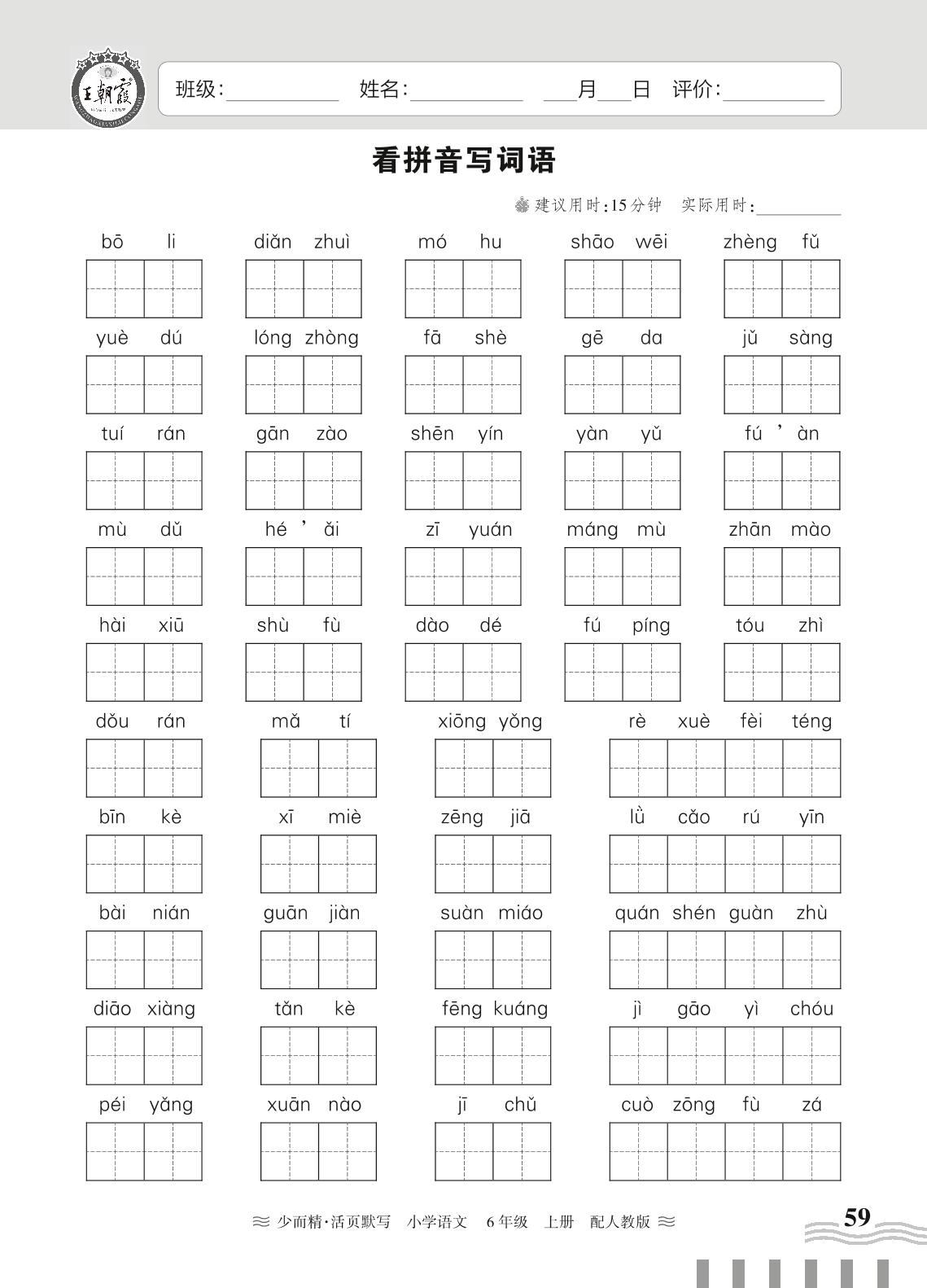 2023上册六年级语文人教版 期末专项练习——看拼音写词语