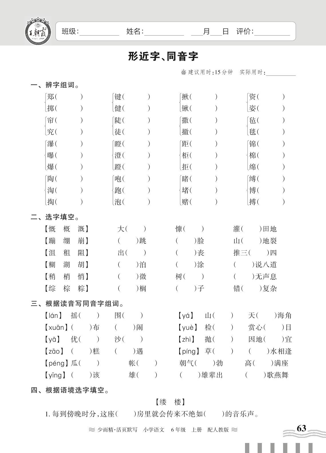 2023上册六年级语文人教版 期末专项练习——形近字、同音字
