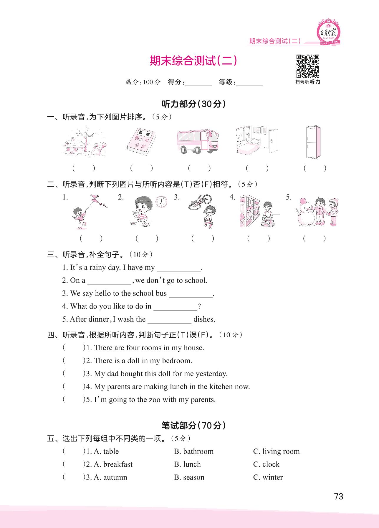 2023上册六年级英语冀教版 期末综合测试(二)
