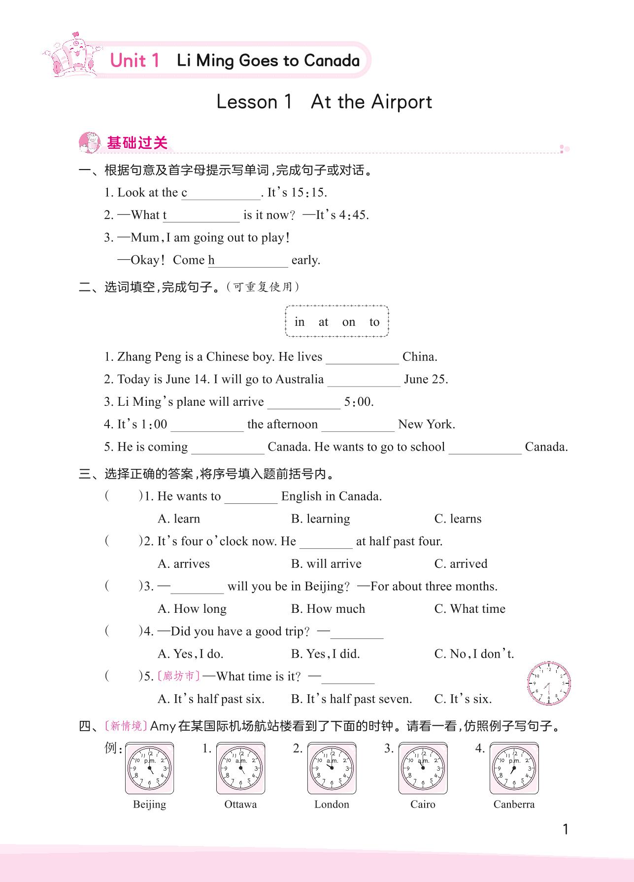 2023上册六年级英语冀教版 Unit 1—Lesson 1 At the Airport