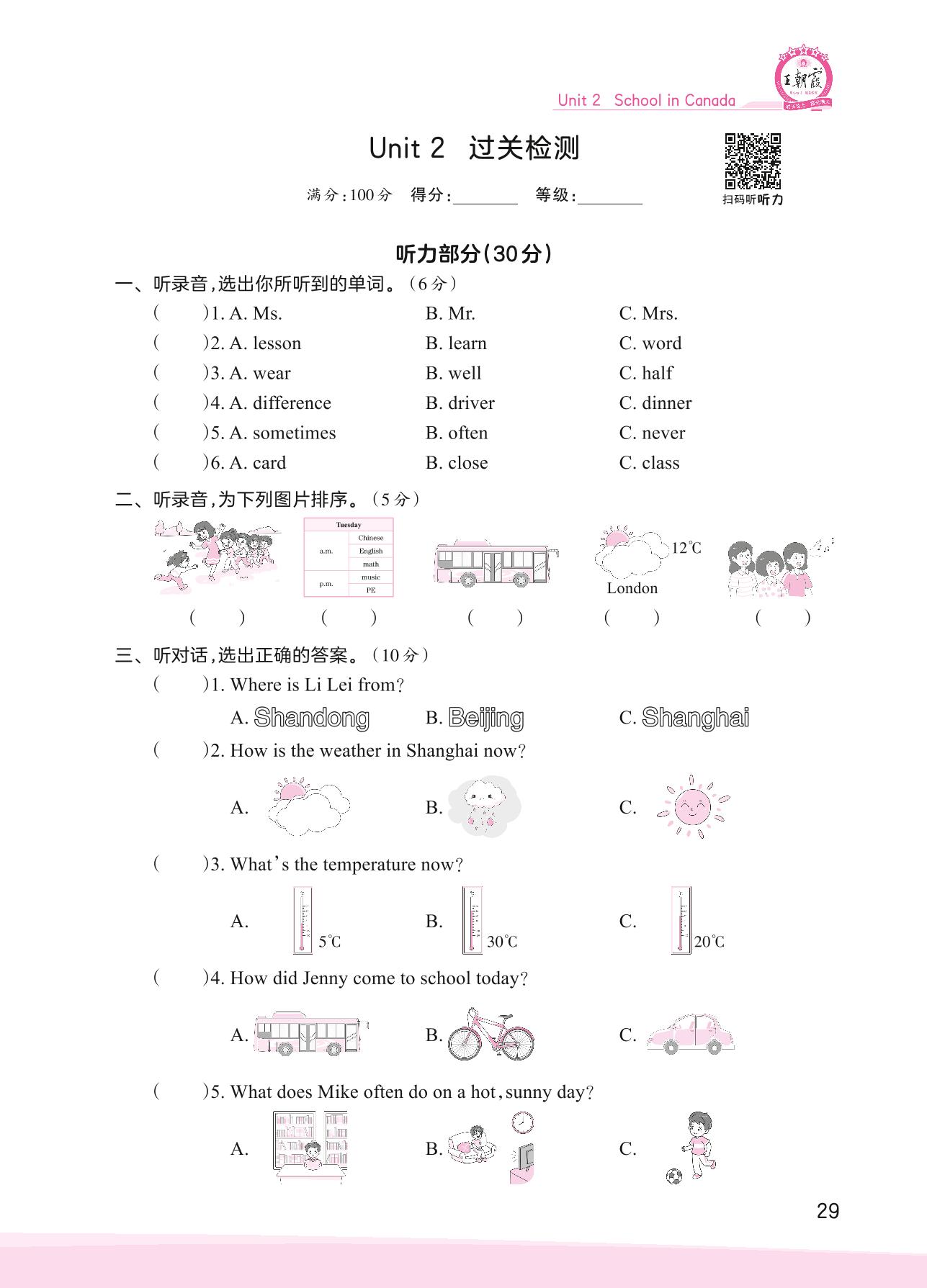六年级英语冀教版上册单元卷
