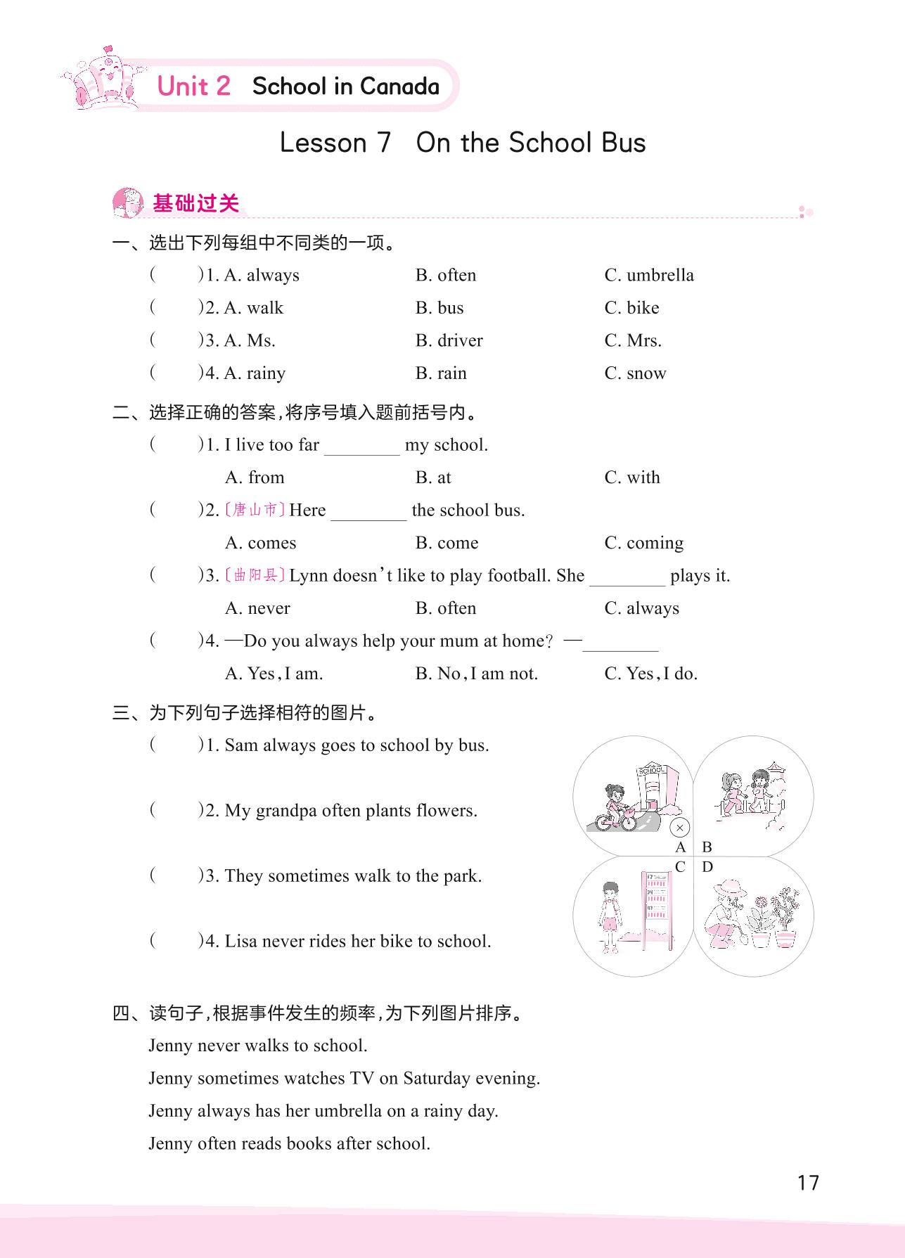 2023上册六年级英语冀教版 Unit 2—Lesson 7 On the School Bus