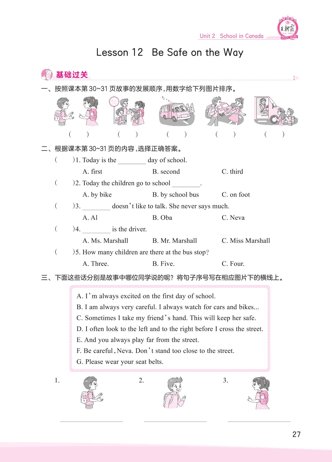 2023上册六年级英语冀教版 Unit 2—Lesson 12 Be Safe on the Way