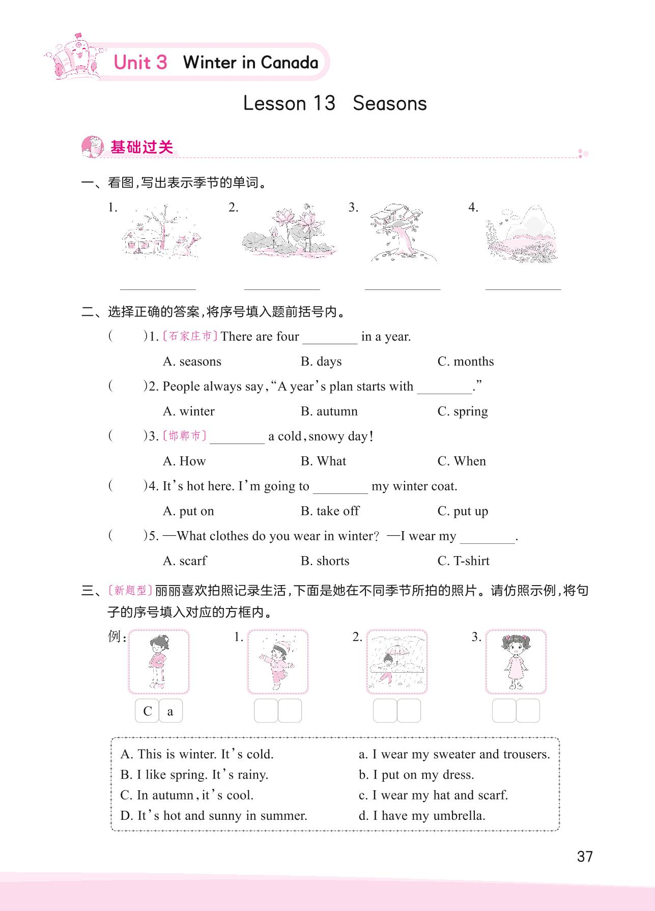 2023上册六年级英语冀教版 Unit 3—Lesson 13 Seasons