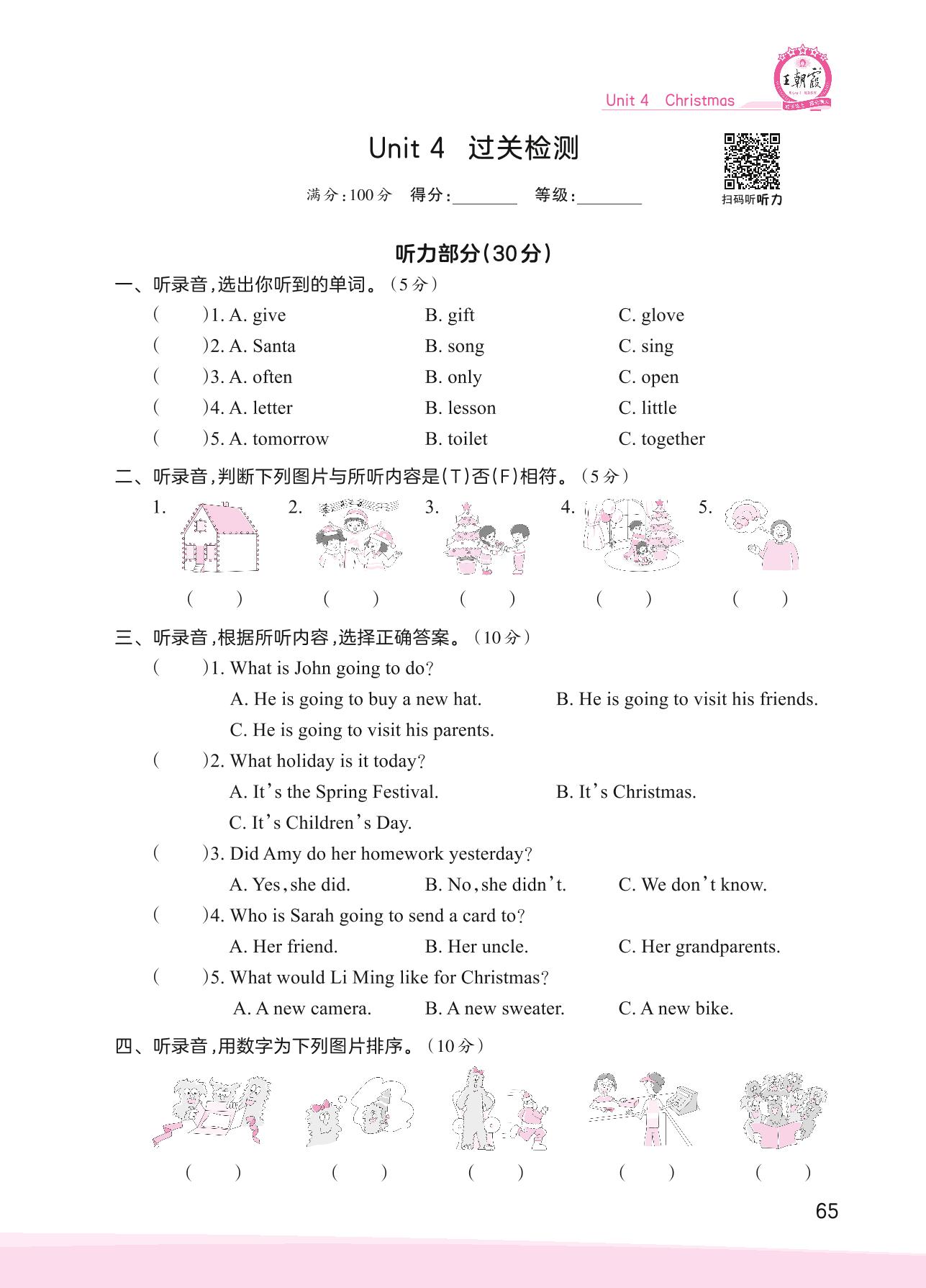 2023上册六年级英语冀教版 Unit 4 过关检测