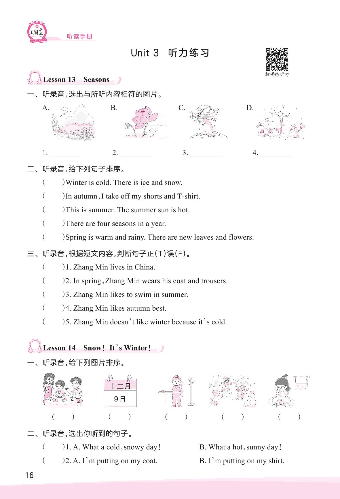 2023上册六年级英语冀教版 Unit 3 Winter in Canada—lesson 13-18听力练习