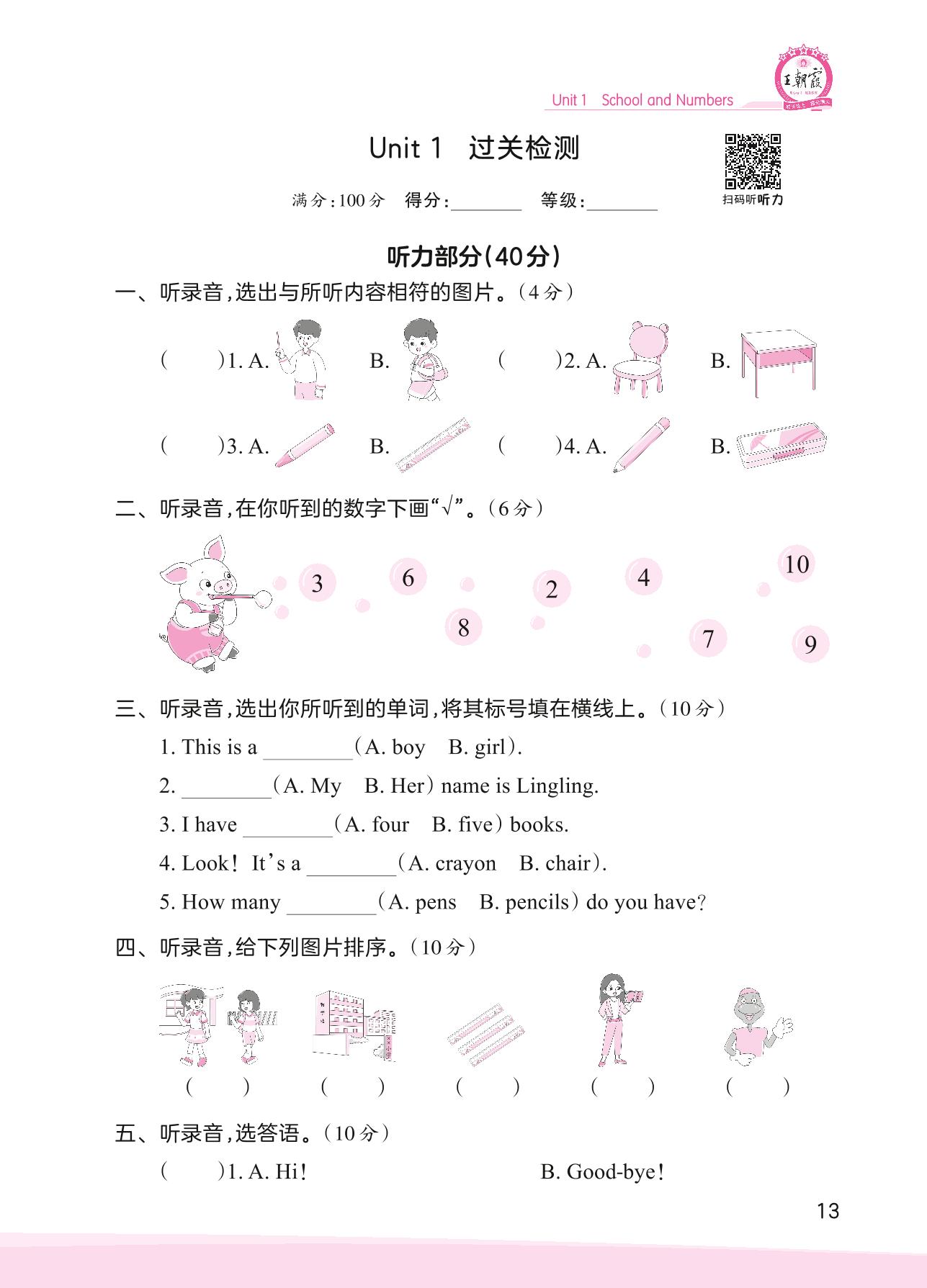 2023上册三年级英语冀教版 Unit 1 过关检测