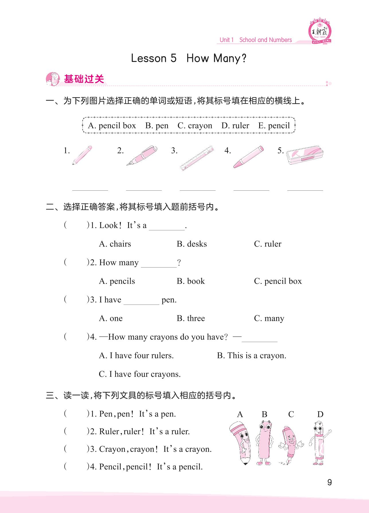 2023上册三年级英语冀教版 Unit 1—Lesson 5 How Many?